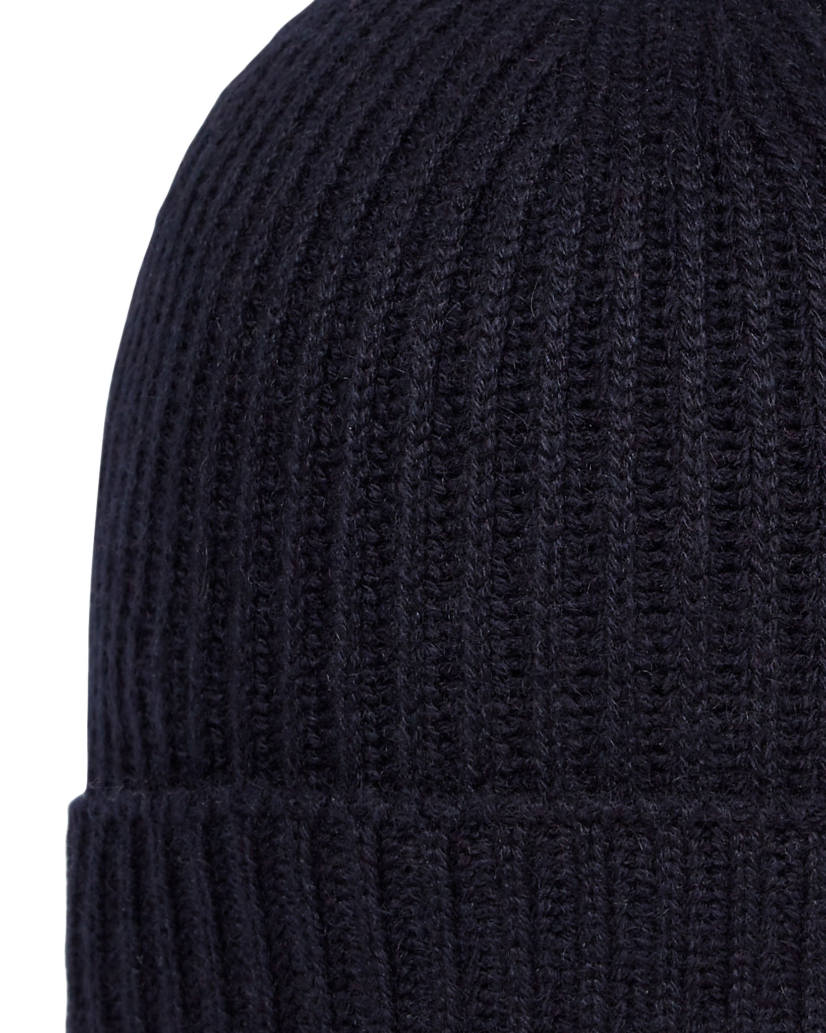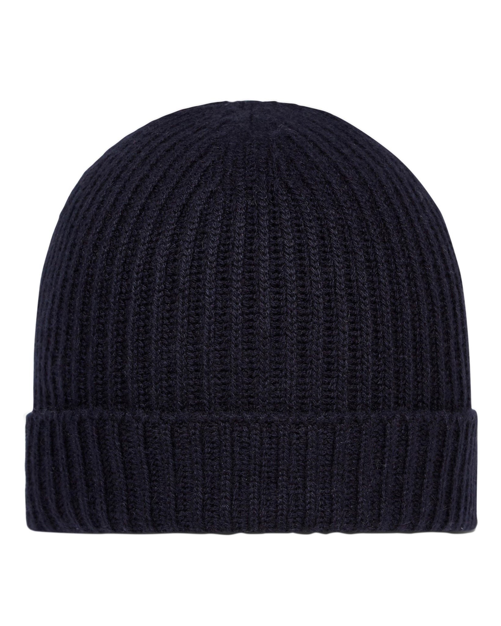 A beautiful and stylish cashmere ribbed hat in Navy.