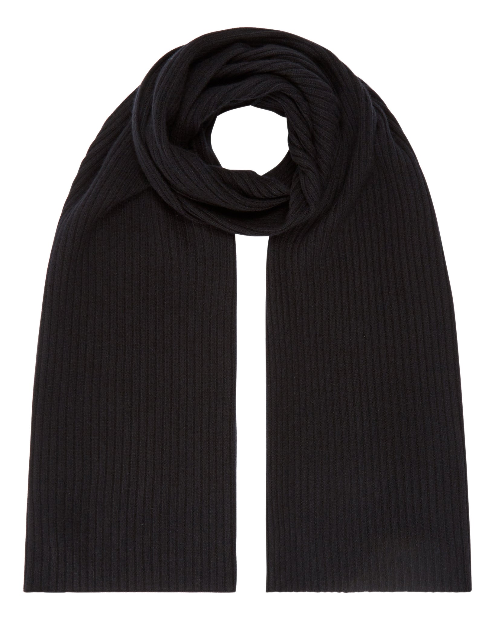 A truly exquisite cashmere ribbed knit scarf in Black, amazing with so many outfits.