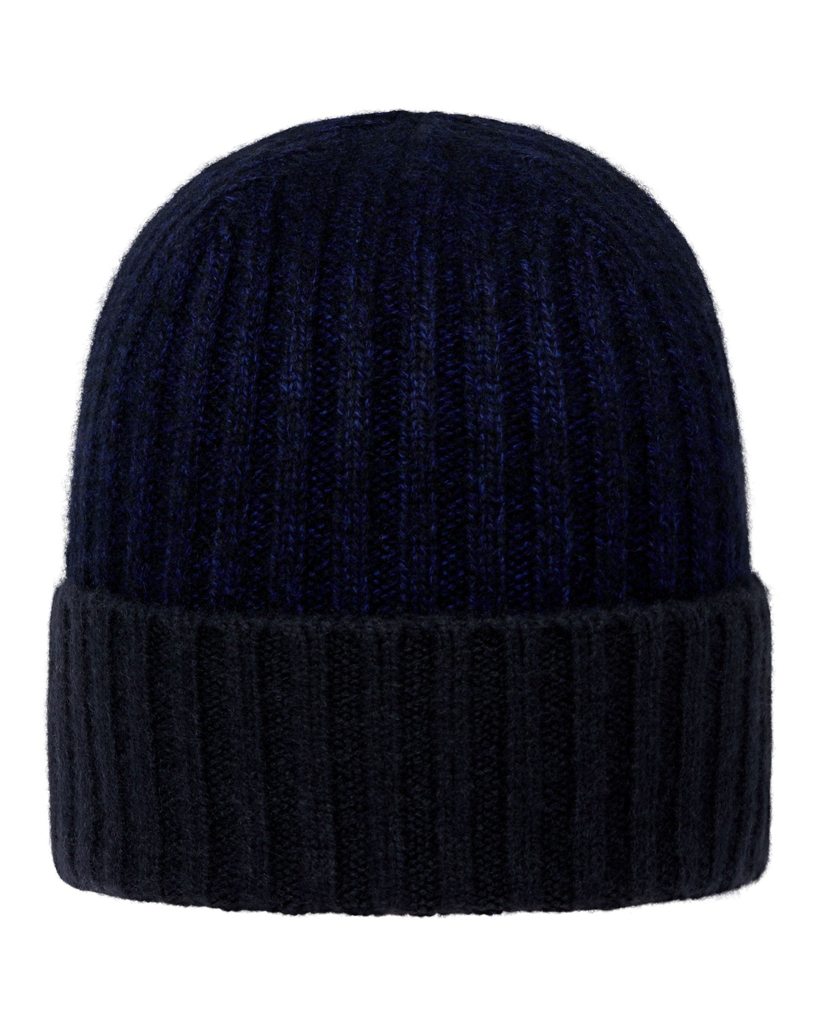 Unisex Chunky Rib Contrast Cashmere Hat Navy Blue Melange