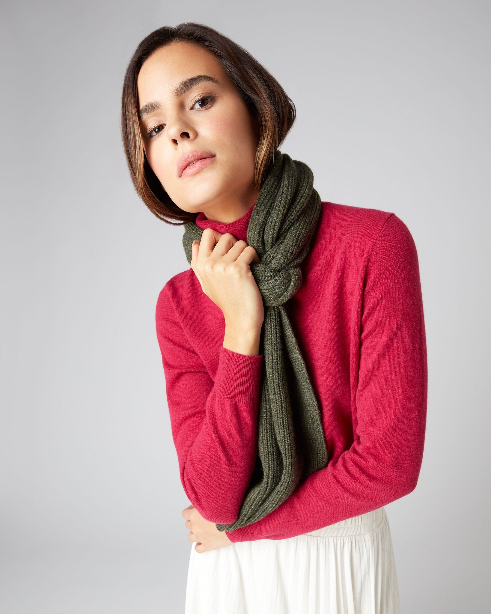 This amazing cashmere ribbed scarf looks the part and is super warm and cosy.