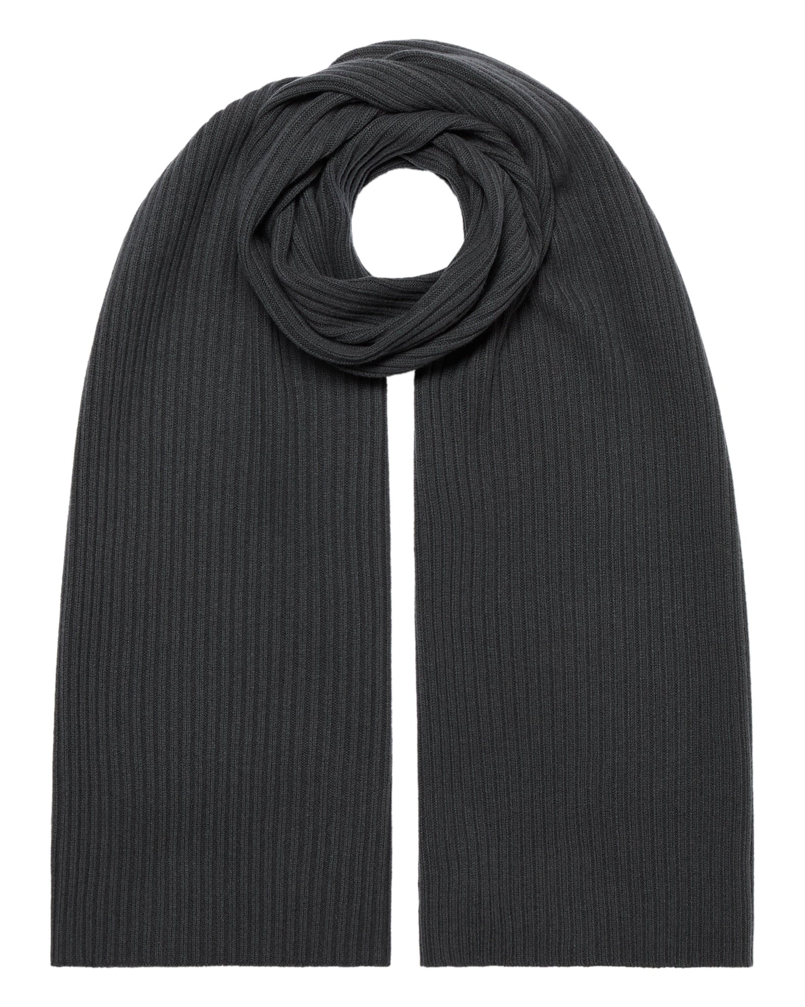 N.Peal Unisex Short Ribbed Cashmere Scarf Anthracite Grey
