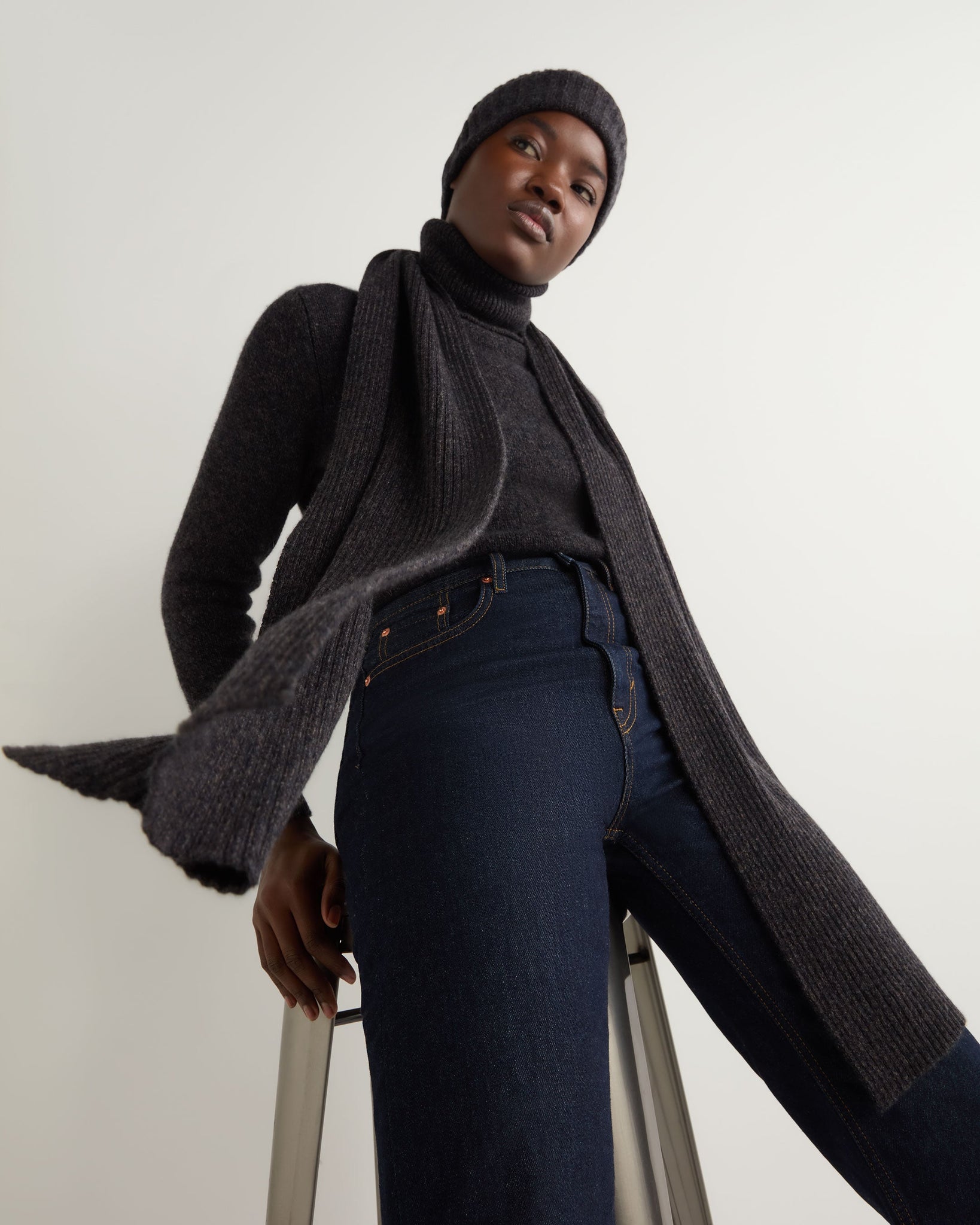 A truly exquisite cashmere ribbed knit scarf, amazing with so many outfits.