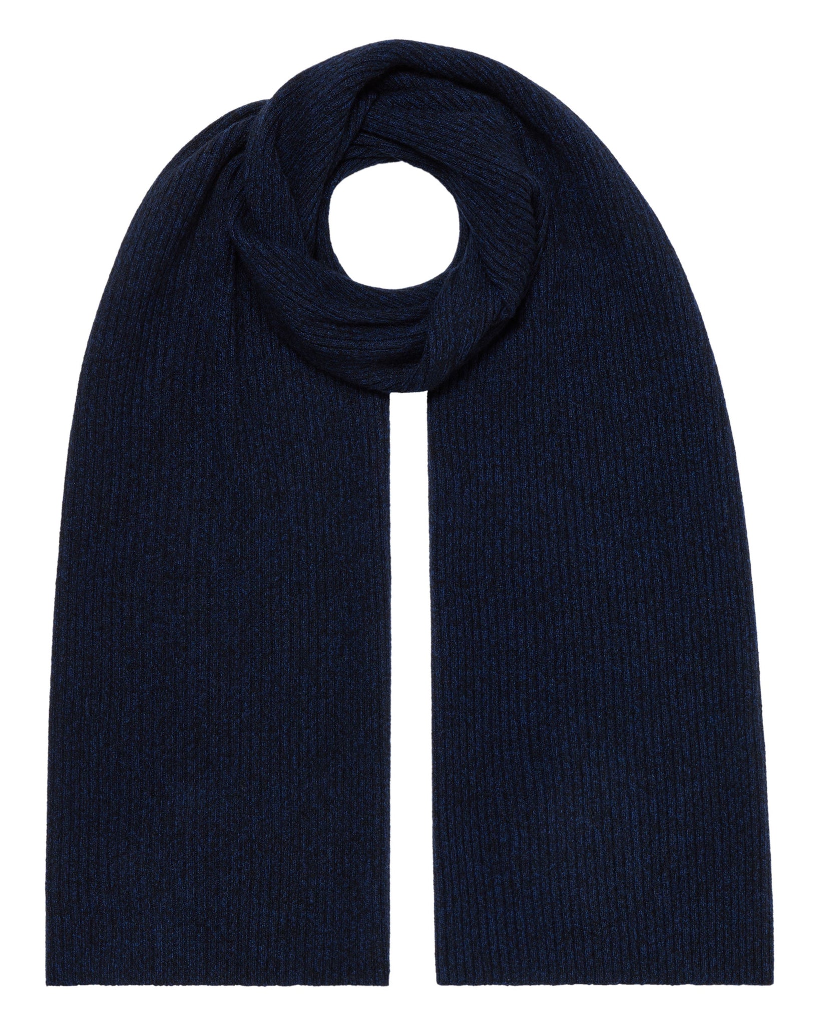 N.Peal Unisex Short Ribbed Cashmere Scarf Navy Blue Melange