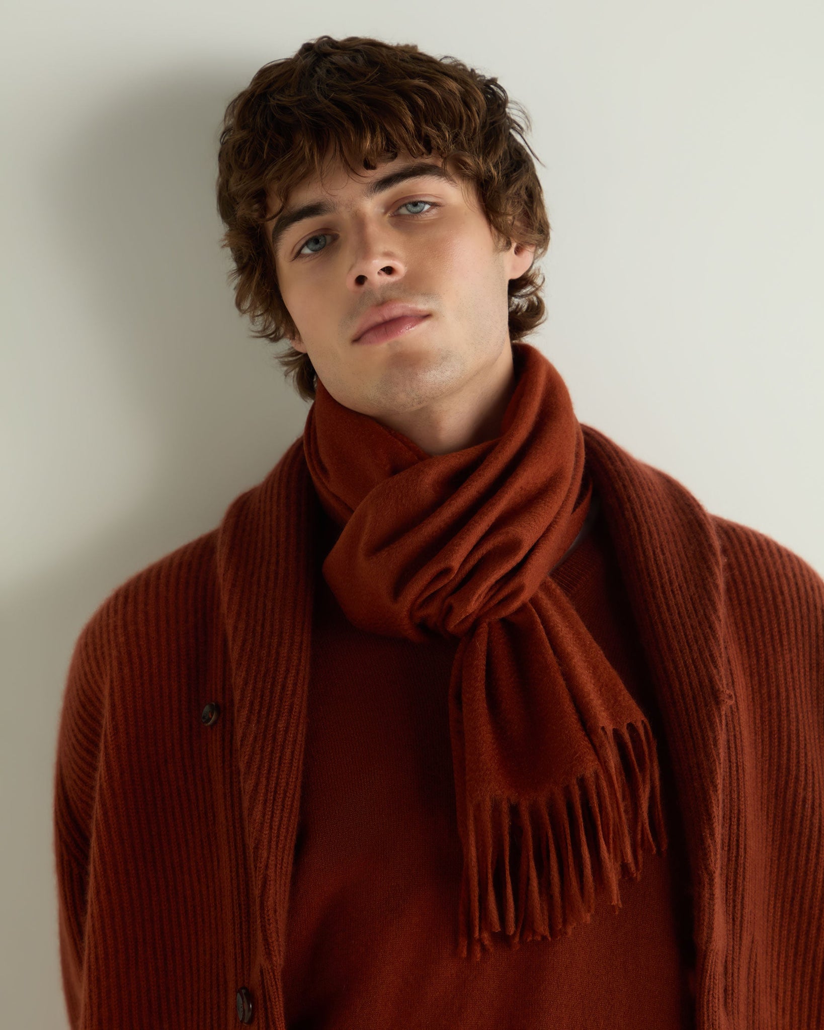 • Load image into Gallery viewer, N.Peal Unisex Woven Cashmere Scarf Spice Orange