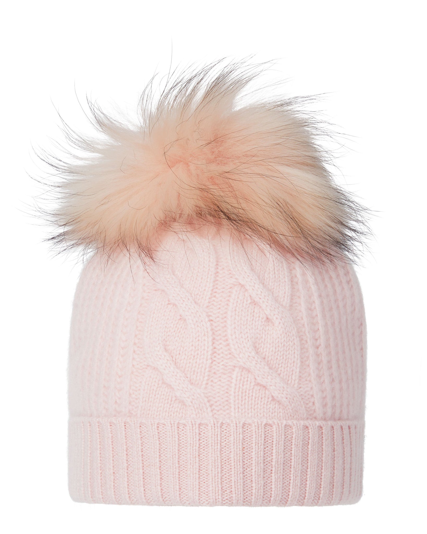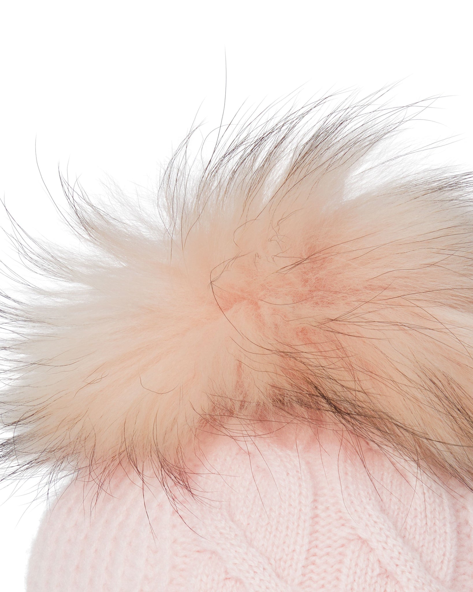 Women's Cable Cashmere Hat With Fur Pom Quartz Pink