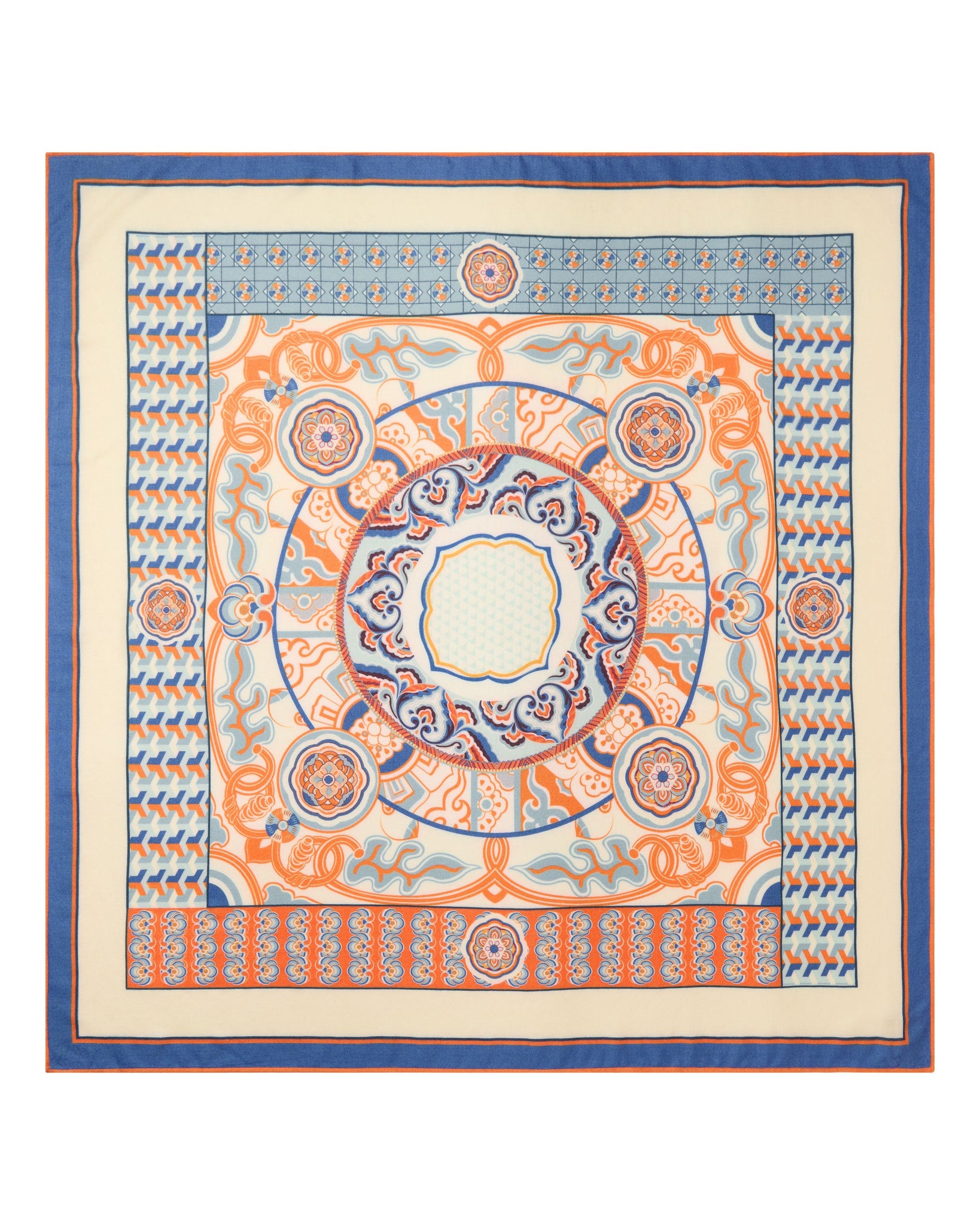 Elevate your style with our stunning printed foulard, a perfect blend of vibrant colours and exquisite design.