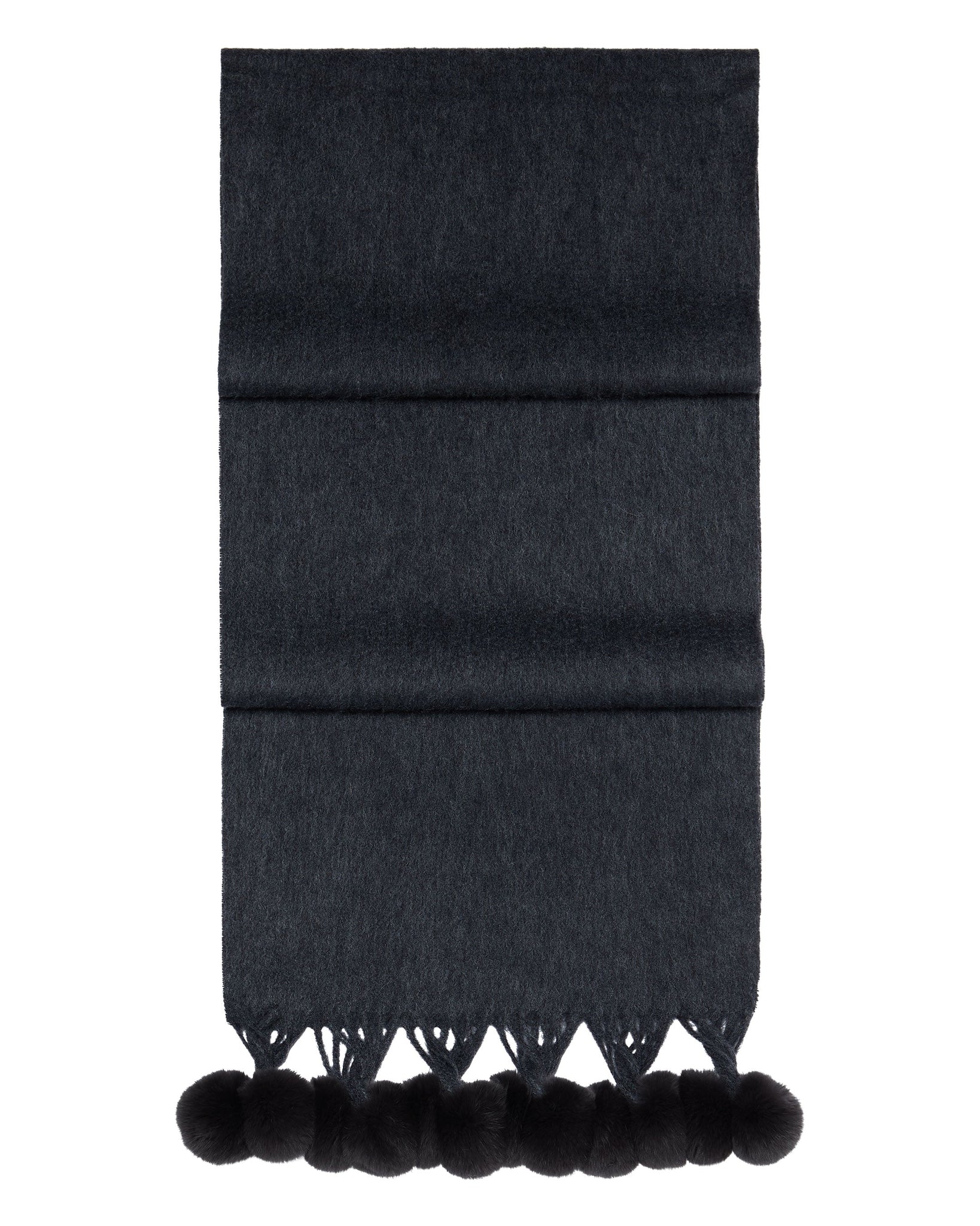 Women's Davos Fur Bobble Cashmere Scarf Dark Charcoal Grey