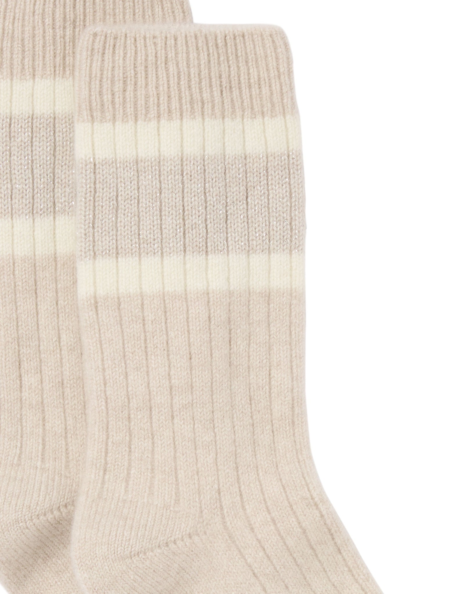 N.Peal Women's Rib Stripe Cashmere Socks Ecru White