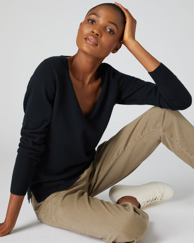 Women's Longline V Neck Cashmere Jumper Black