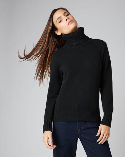 Women's Superfine Cashmere Roll Neck Jumper Black