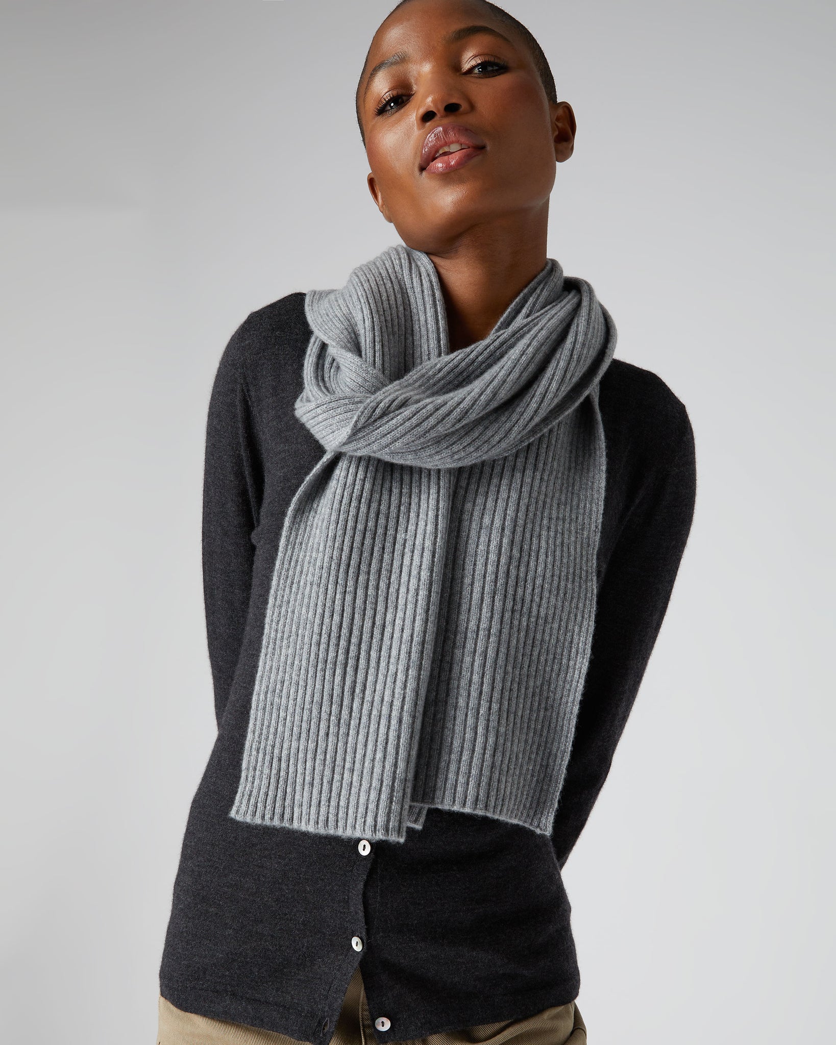 A truly exquisite cashmere ribbed knit scarf, amazing with so many outfits.