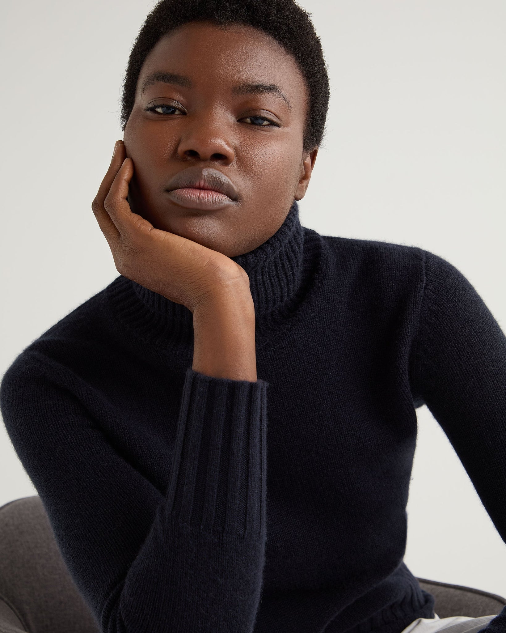 N.Peal Women's Hazel Chunky Roll Neck Cashmere Jumper Navy Blue