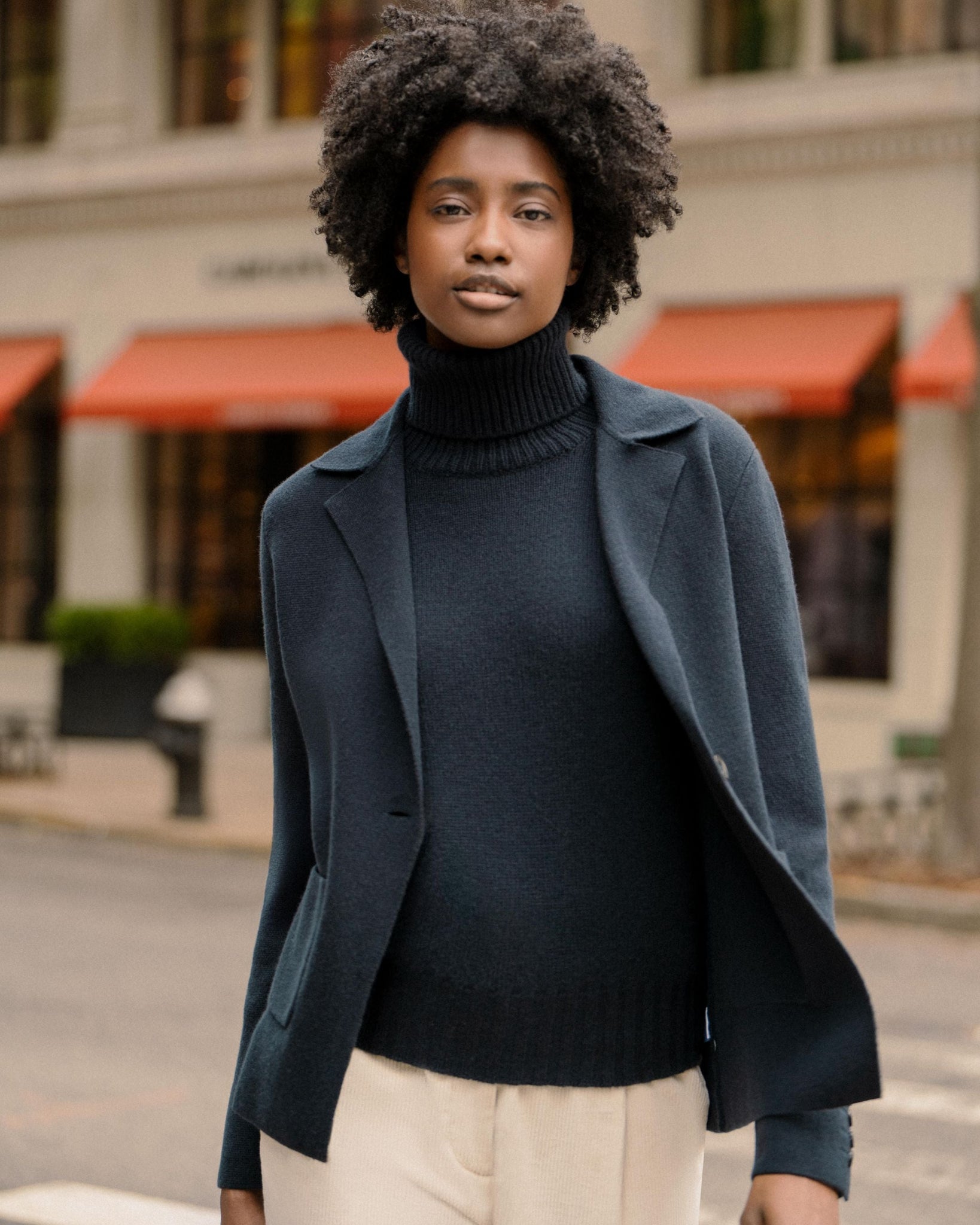 N.Peal Women's Single Breasted Cashmere Blazer Navy Blue
