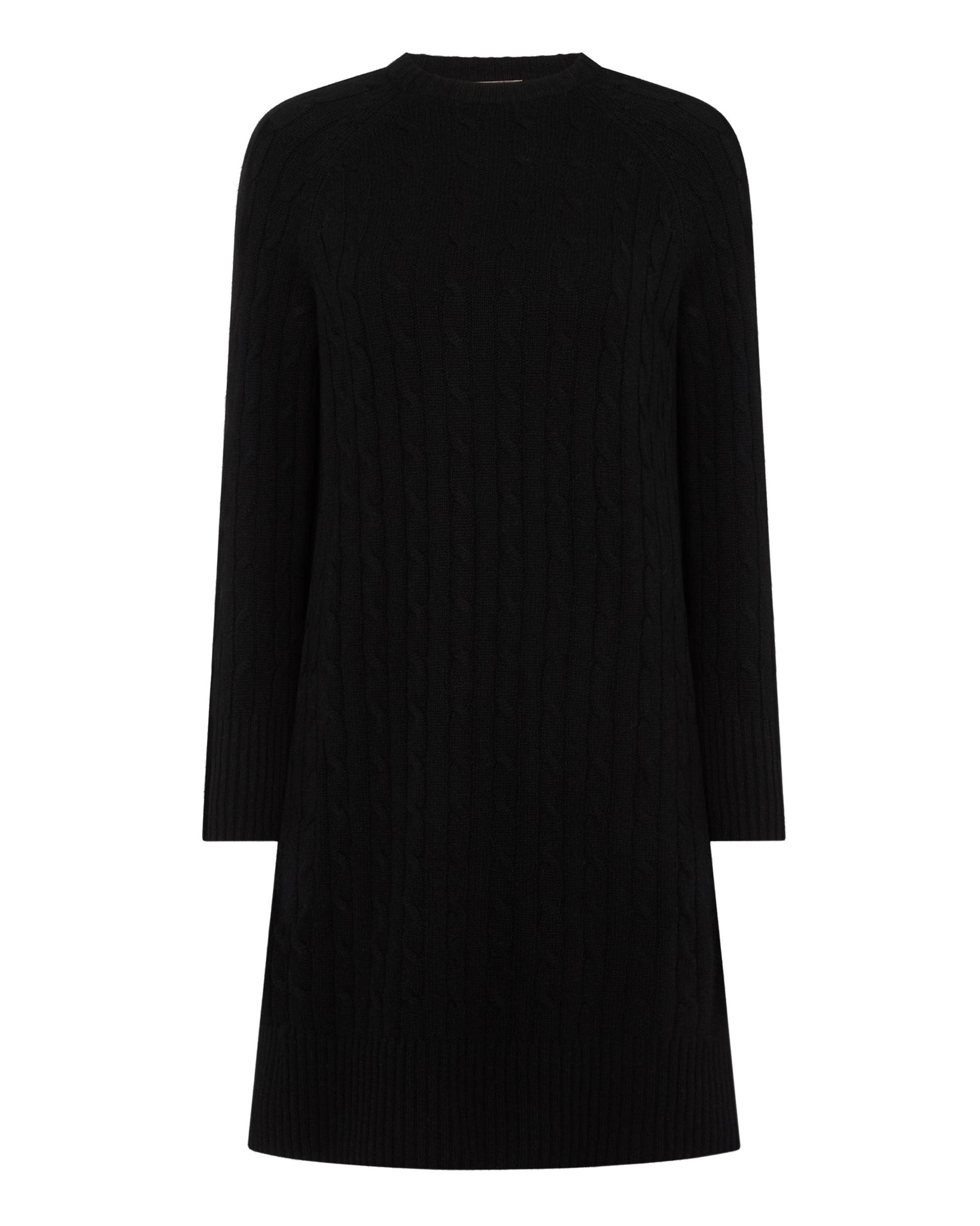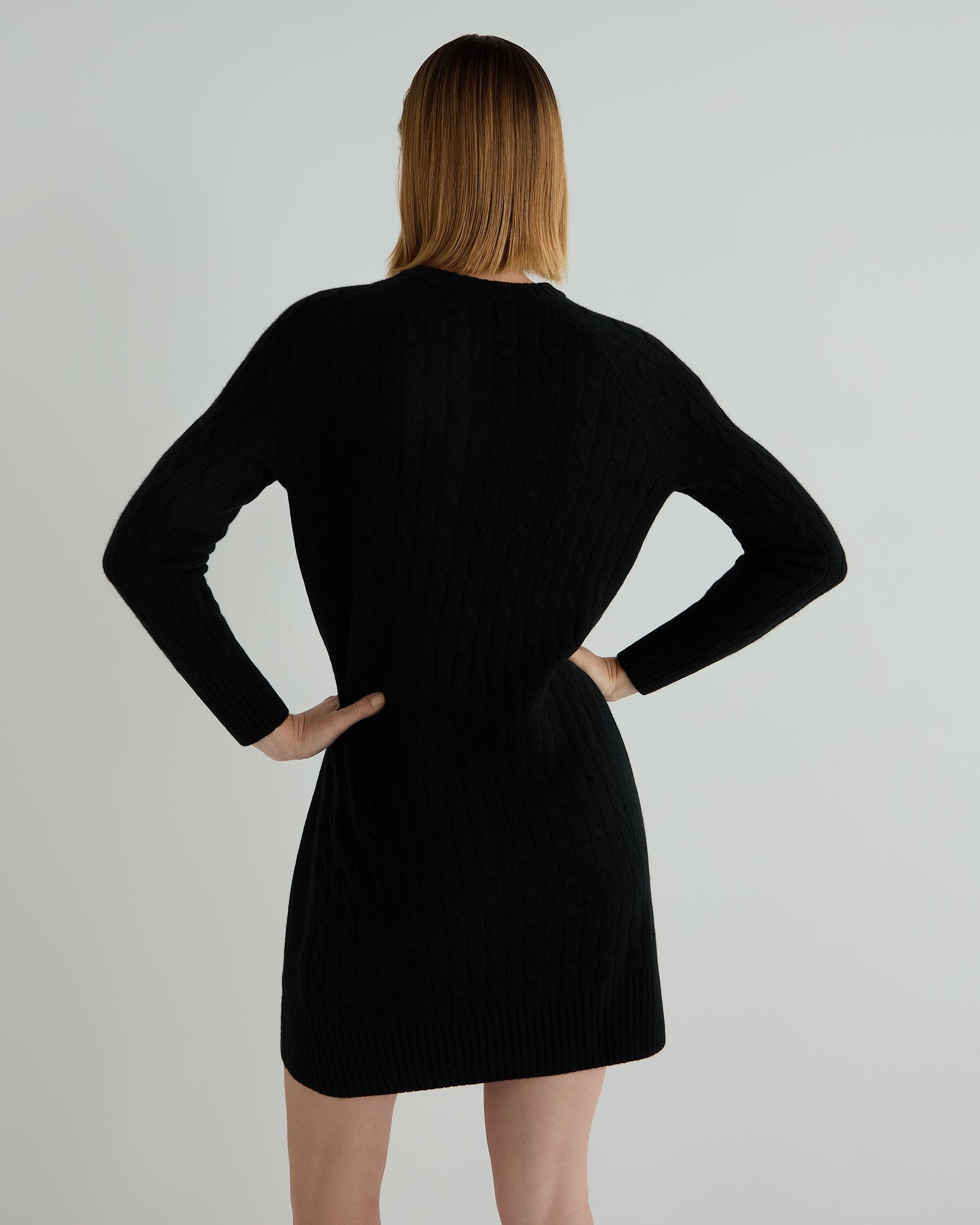 Women's Bella Round Neck Cable Cashmere Dress Black