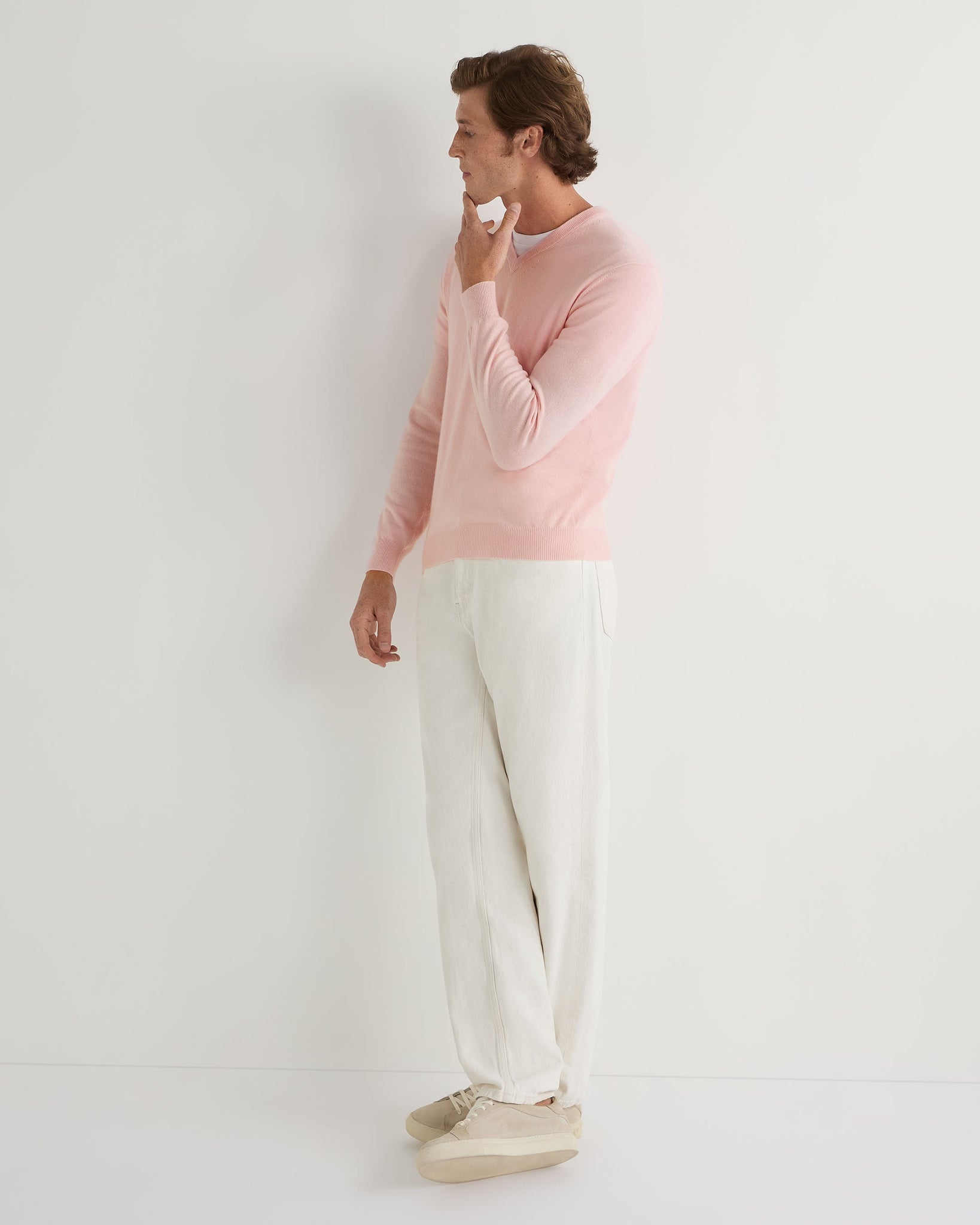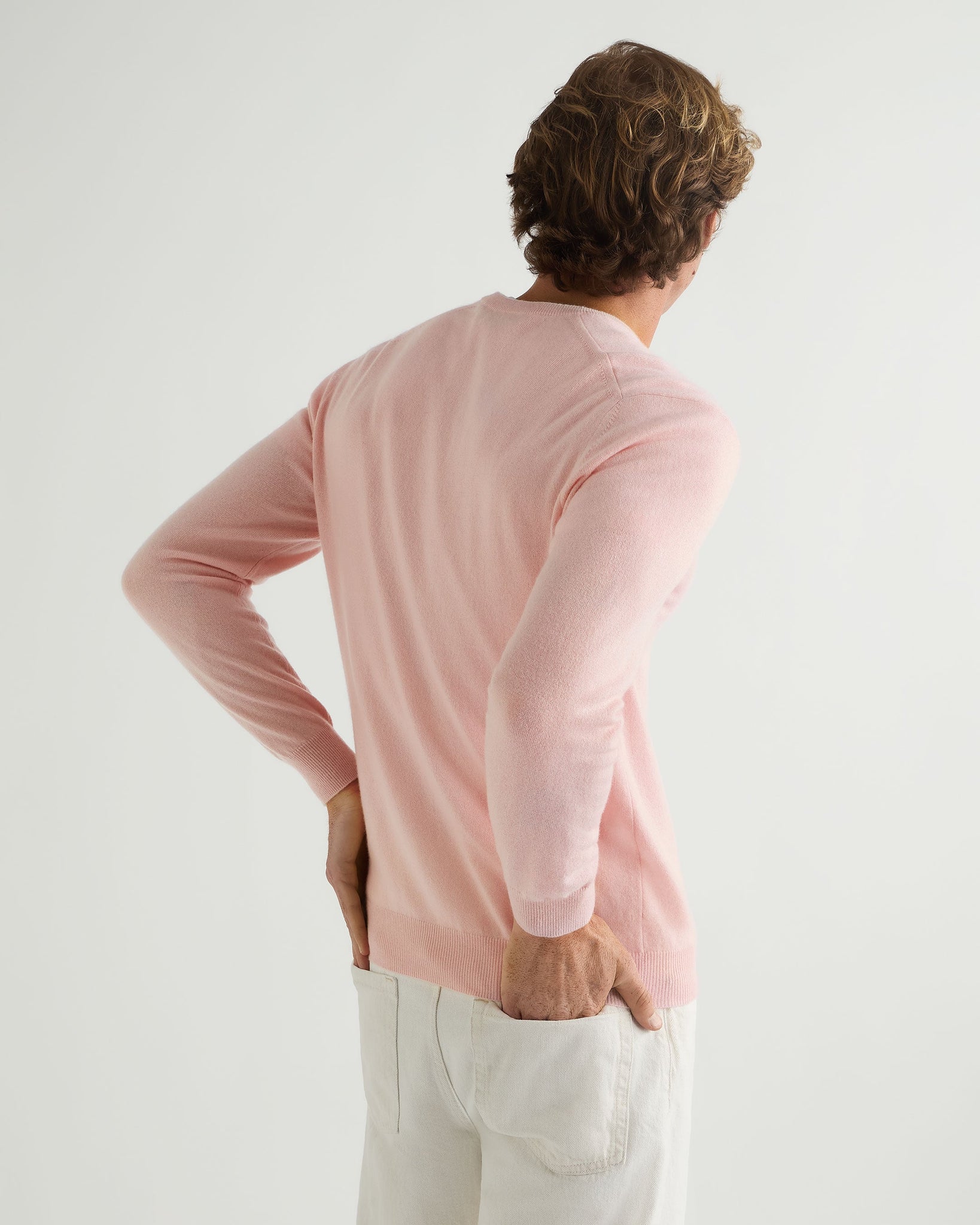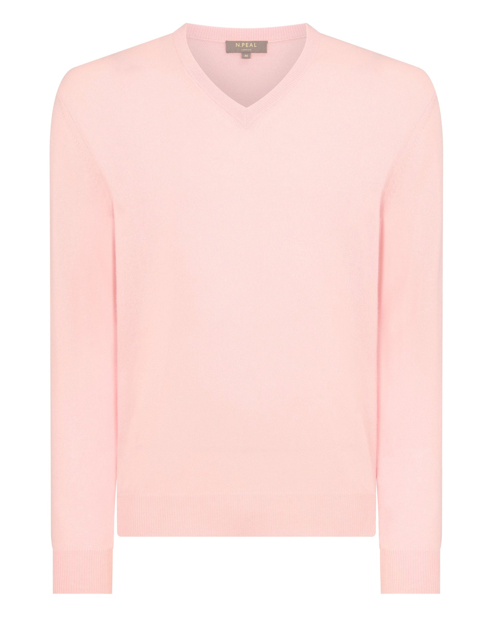 N.Peal Men's Burlington V Neck Cashmere Jumper Pale Pink