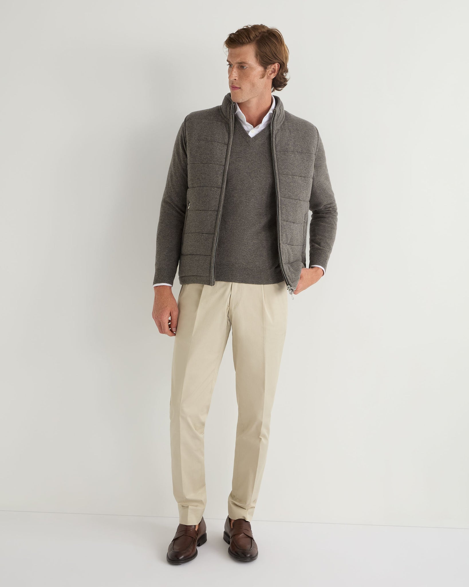 Here we see the 1ply cashmere Burlington V neck sweater.