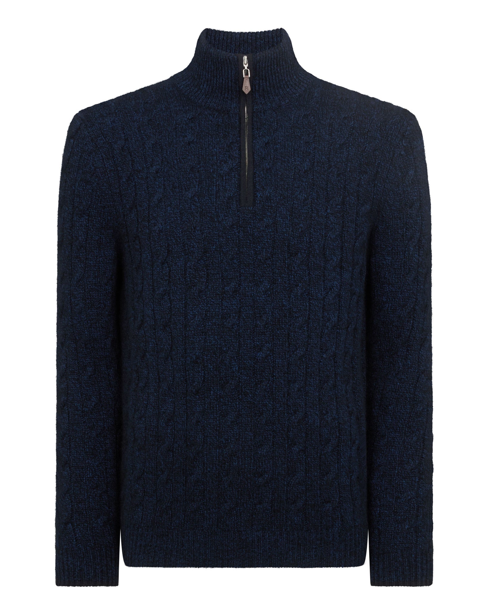 Men's Albemarle Cable Half Zip Cashmere Jumper Navy Blue Melange
