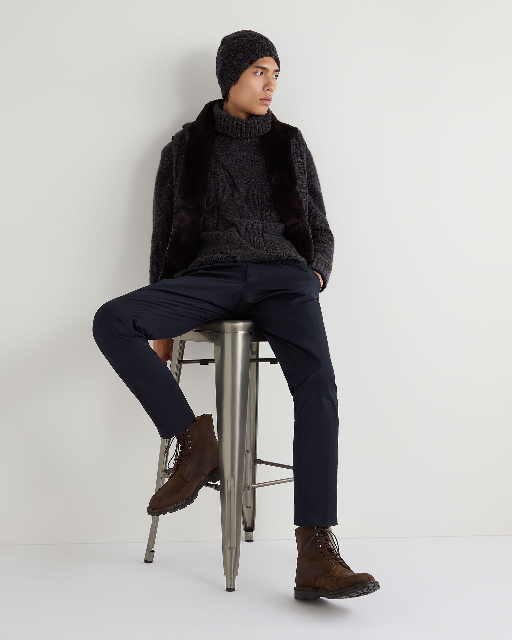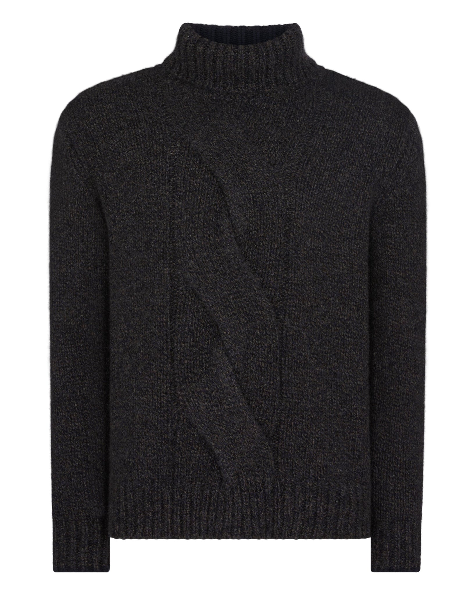 - Made from 100% organic Mongolian cashmere of the finest quality - Featuring a beautiful cable design running down the centre of the body - Matching ribbed neck, cuffs and hem - Navy blue contrast trim - Luxuriously soft and comfortable - Easy to layer over T-shirts or jackets on top - Perfect for the colder months or outdoor pursuits - Effortlessly transitions from casual to smart - 10ply - Model is wearing size Medium - Care: Hand Wash