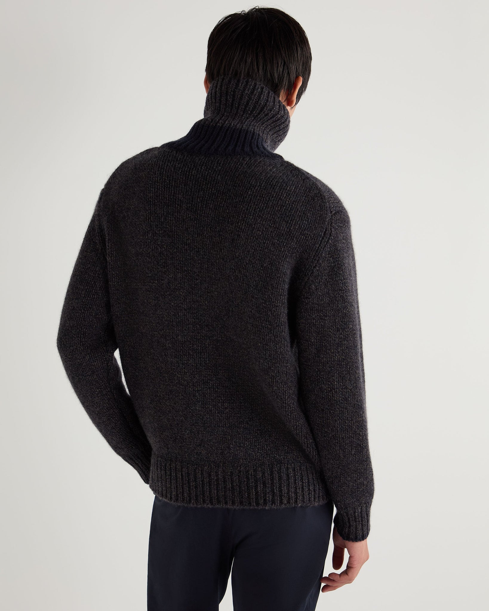 Men's Wandsworth Cable Roll Cashmere Jumper Granite Grey