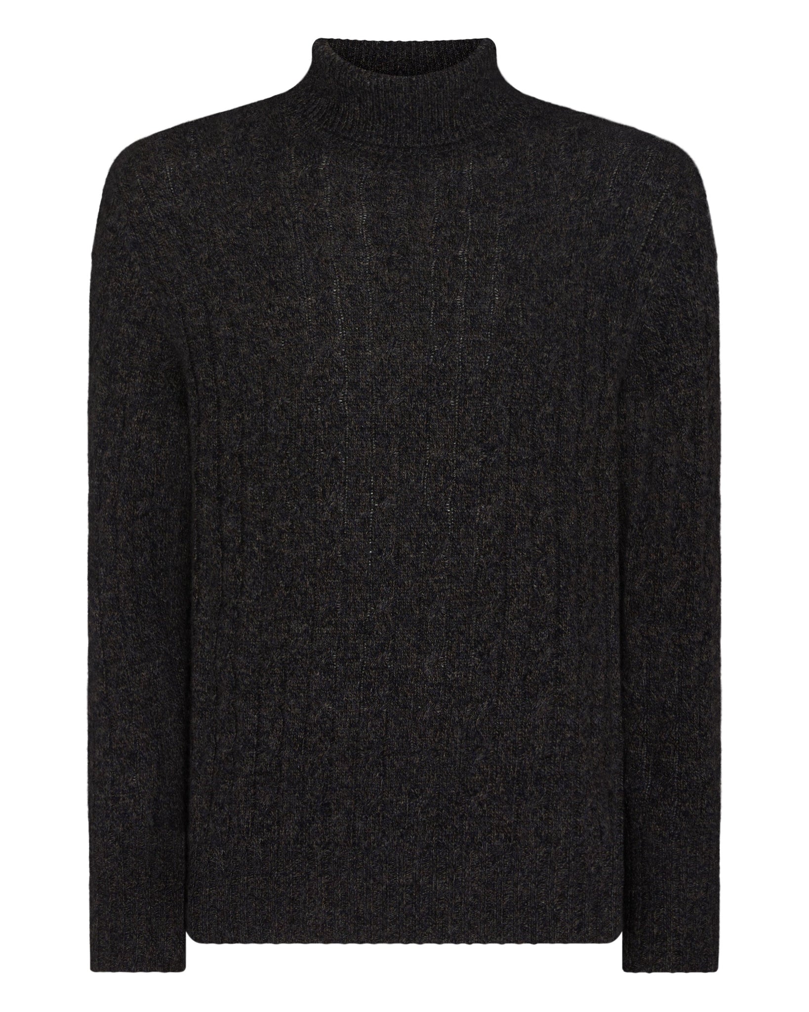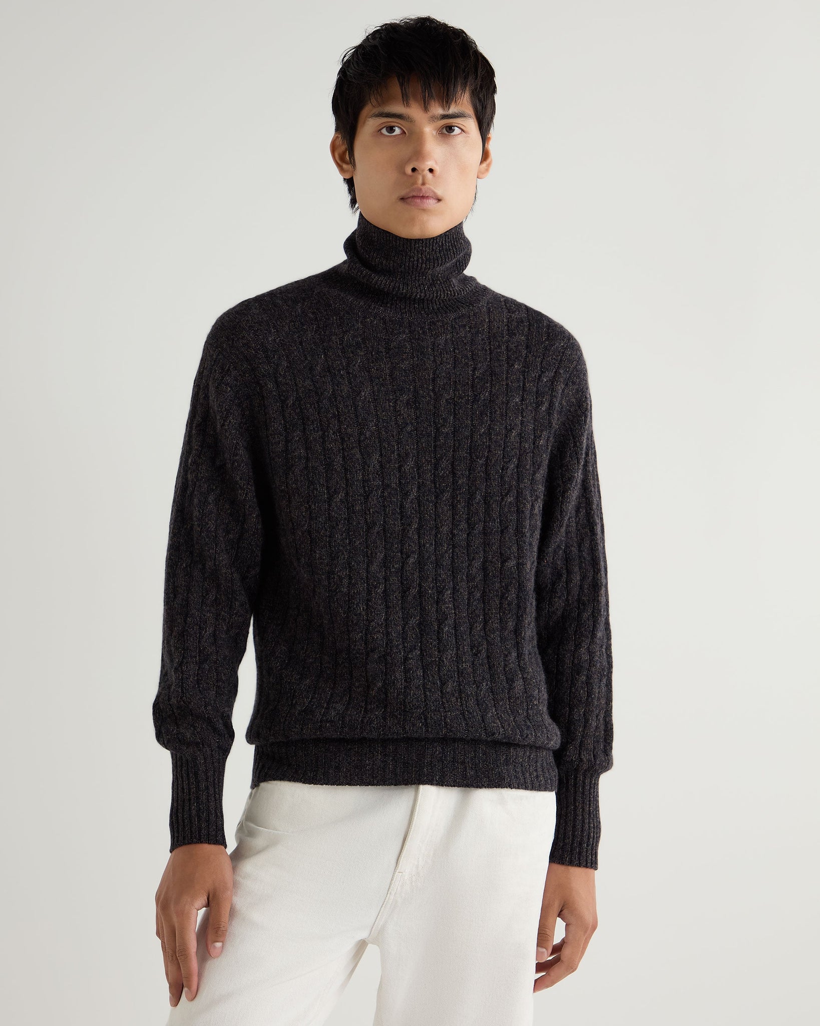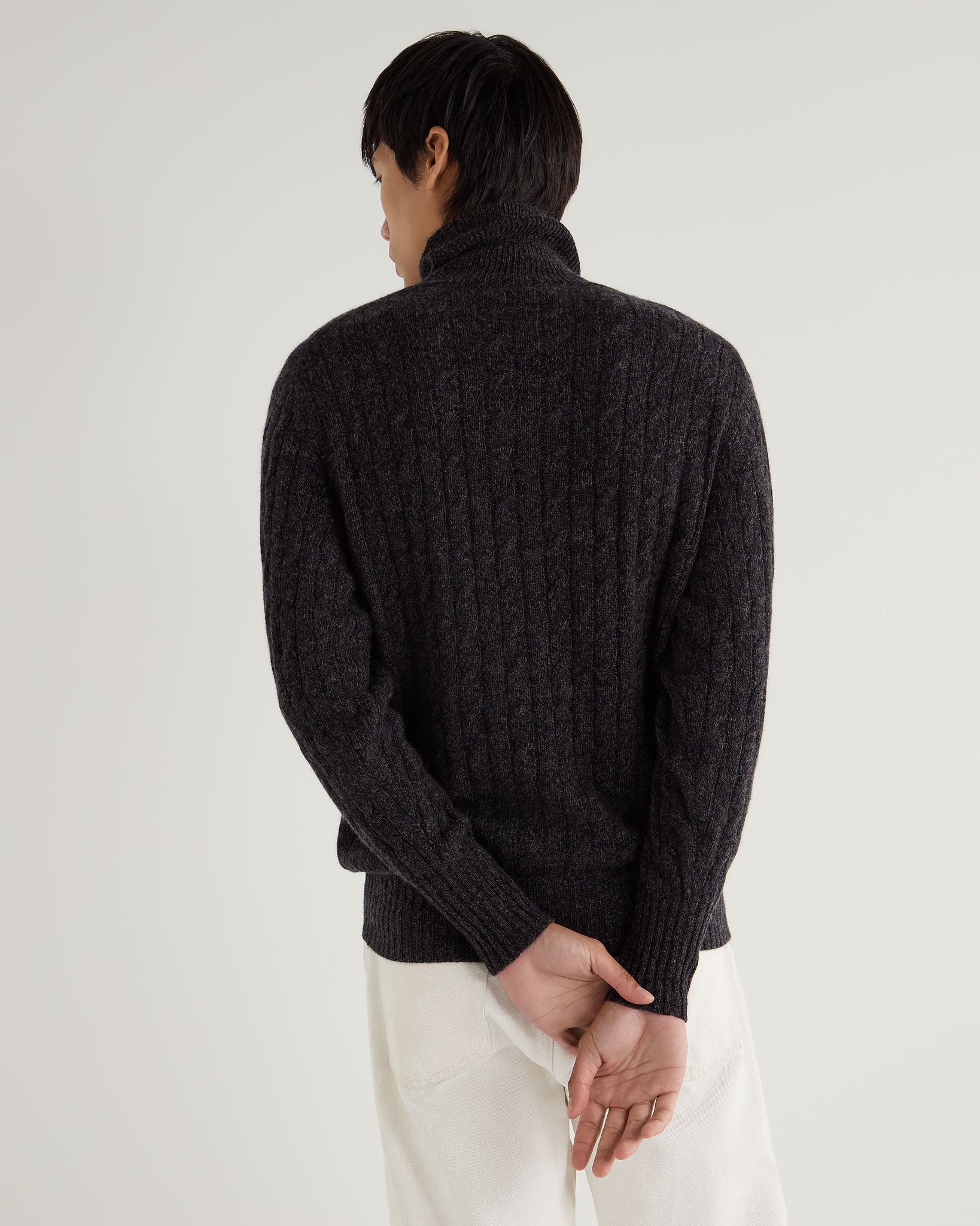 Men's Berwick Cable Roll Neck Cashmere Jumper Granite Grey