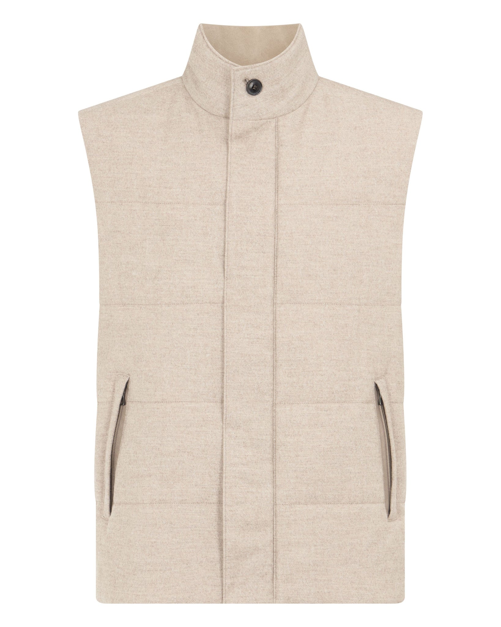 - Made from 98% wool and 2% Mongolian cashmere - Full length zip with buttons covering it - Subtle handy pockets - Excellent new gilet style, perfect for every wardrobe - Model is wearing size Medium - Care: Dry Clean Only