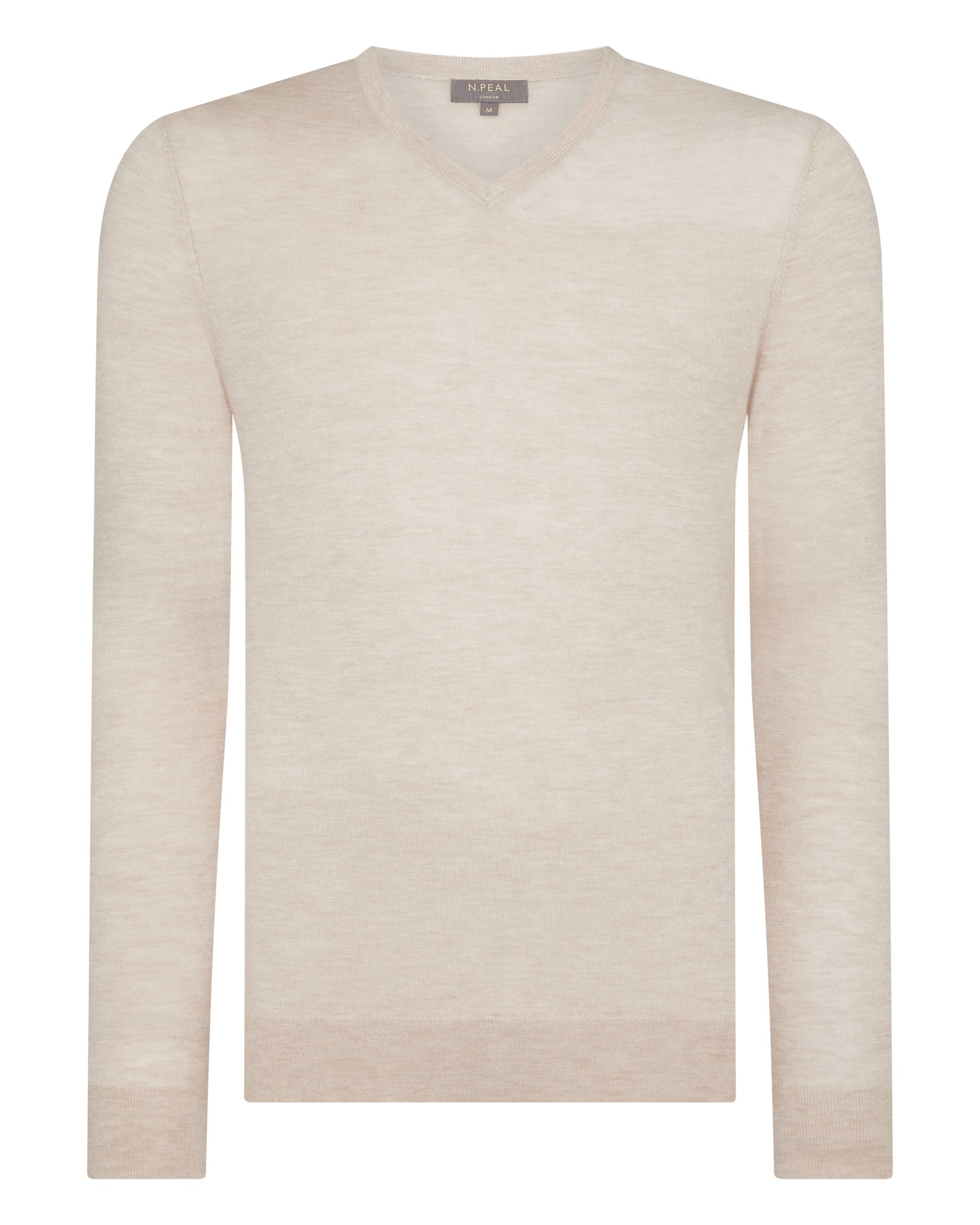 Men's Conduit Fine Gauge Cashmere V Neck Jumper Sandstone