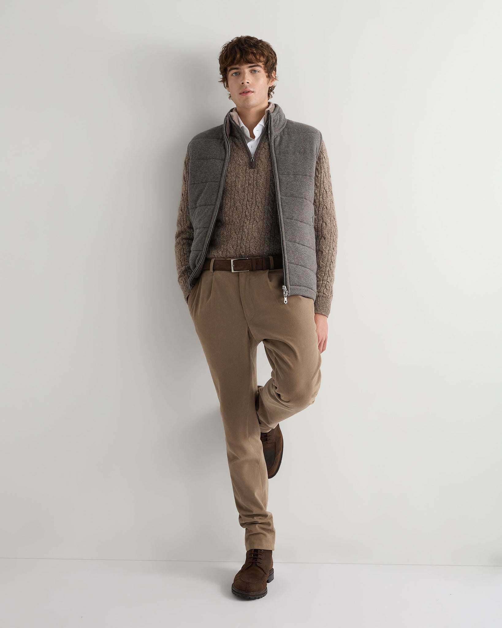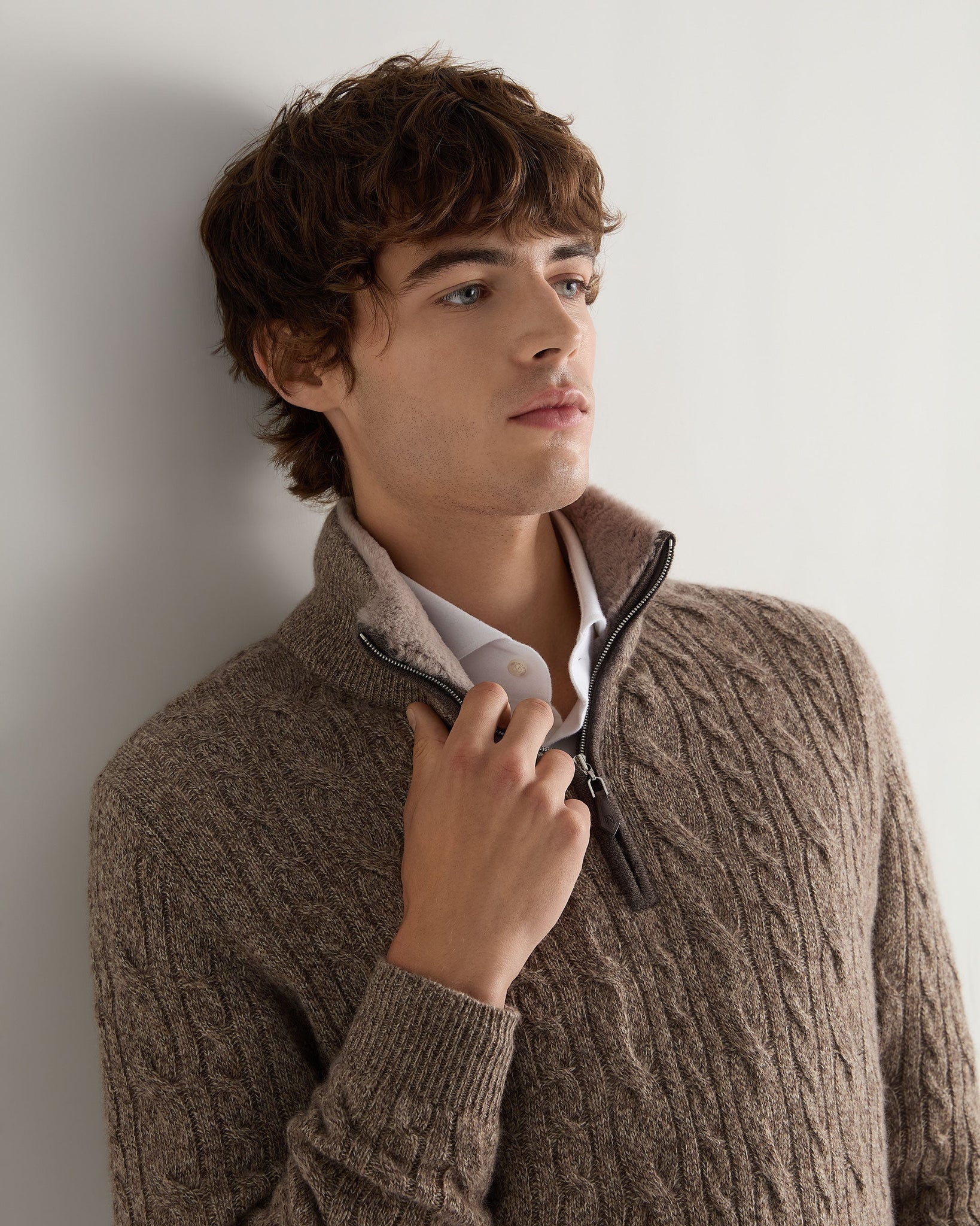 Men's Fur Trim Half Zip Cashmere Jumper Heather Hazel Brown