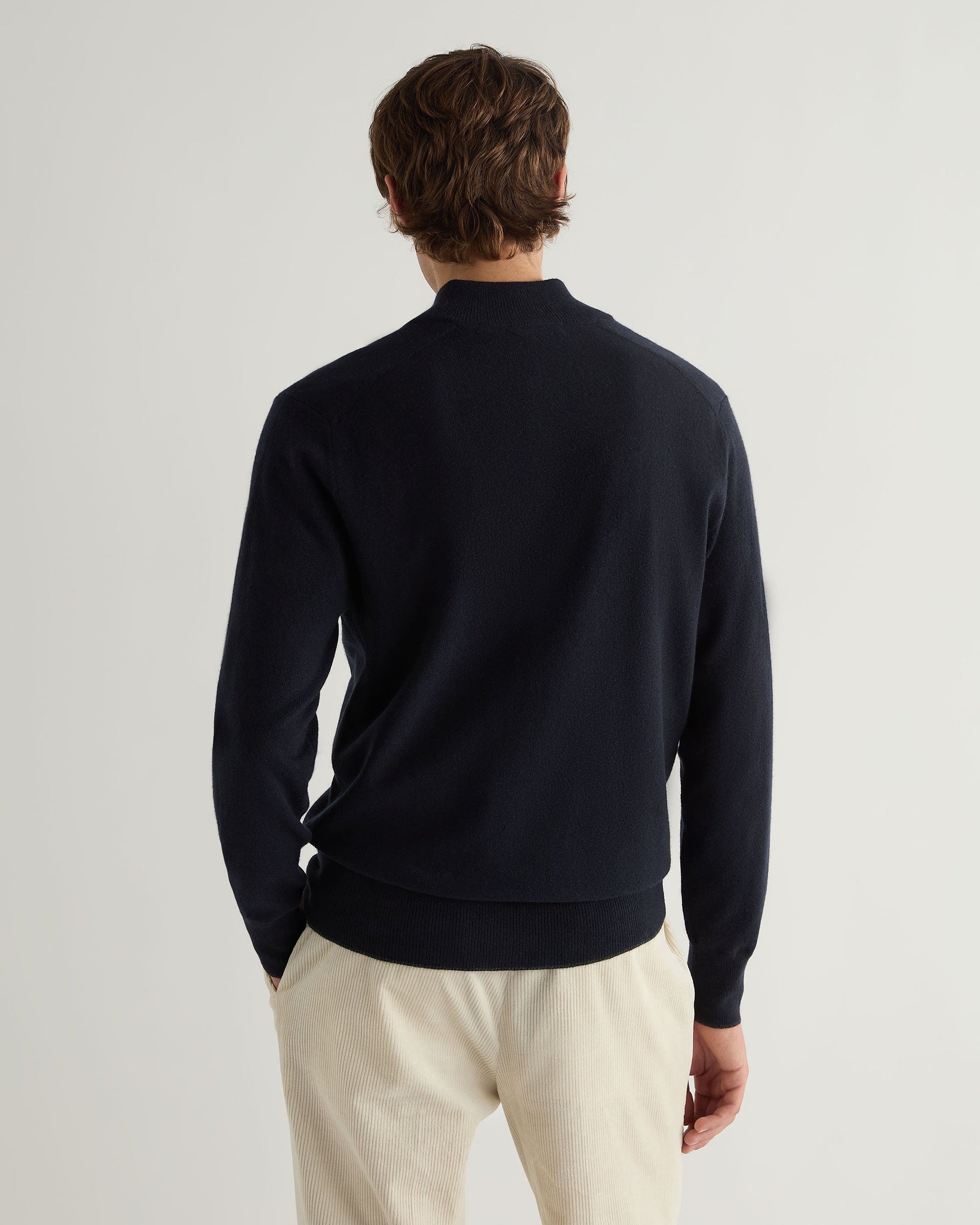 - Made from 100% organic Mongolian cashmere - Dark charcoal contrast trim tipping on cuffs and hem as well as the inner placket and collar - Four button fastening - Great worn casually over a T-shirt or equally great with a more formal shirt - 2ply - Model is wearing size Medium - Care: Hand Wash