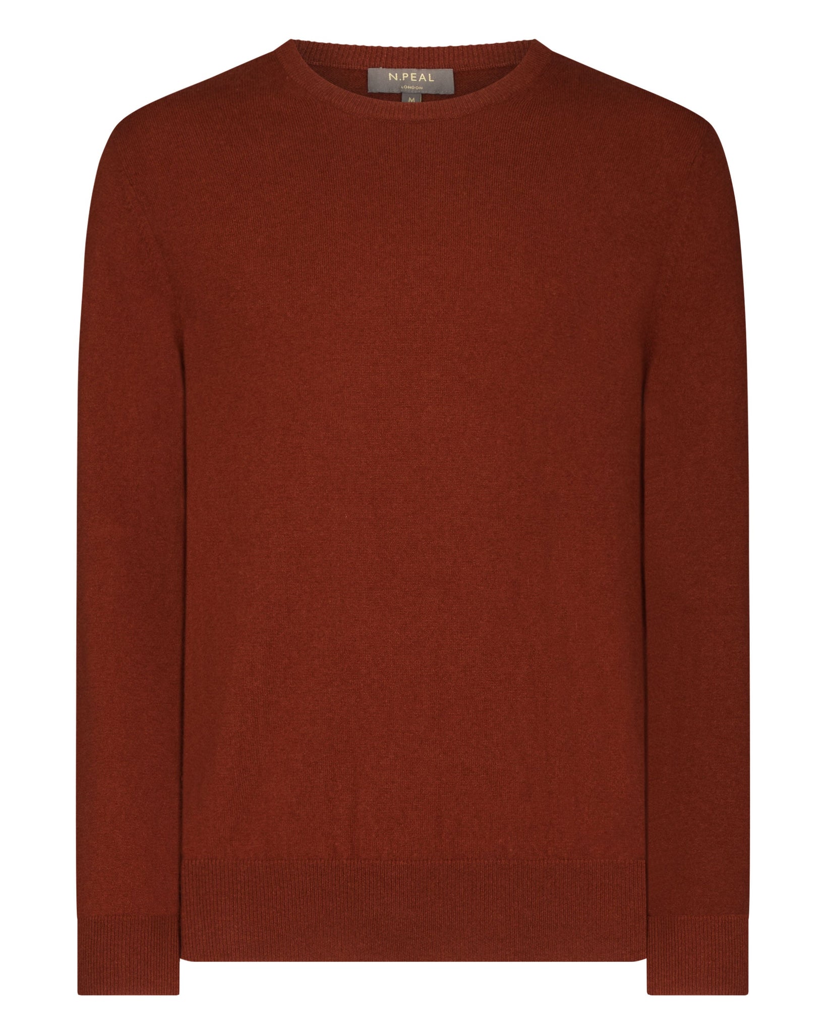 N.Peal Men's Oxford Round Neck Cashmere Jumper Spice Orange