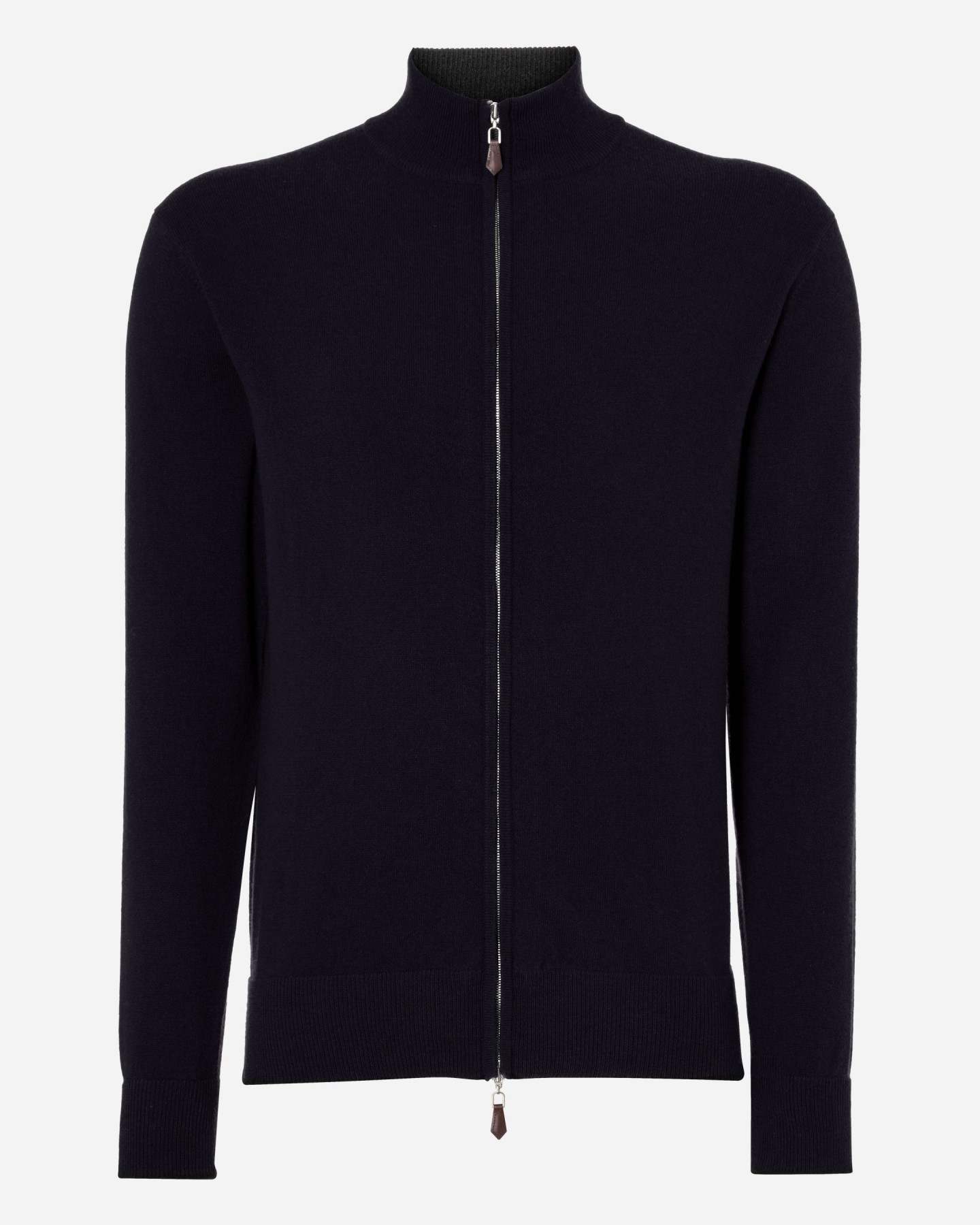 the Knightsbridge zip cashmere sweater in Navy, a wonderfully versatile design to add to your cashmere collection.
