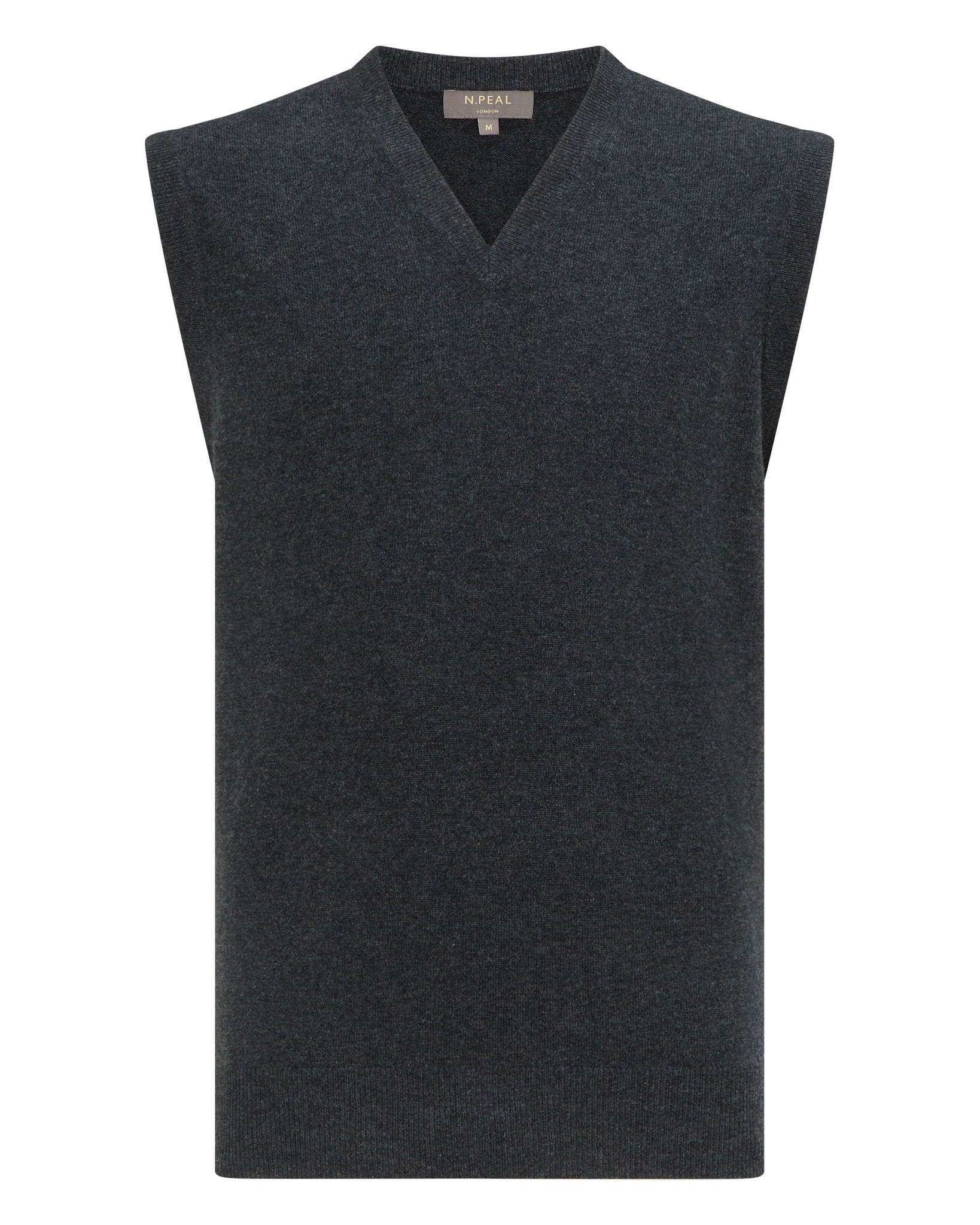 N.Peal Men's Westminster Cashmere Slipover Dark Charcoal Grey