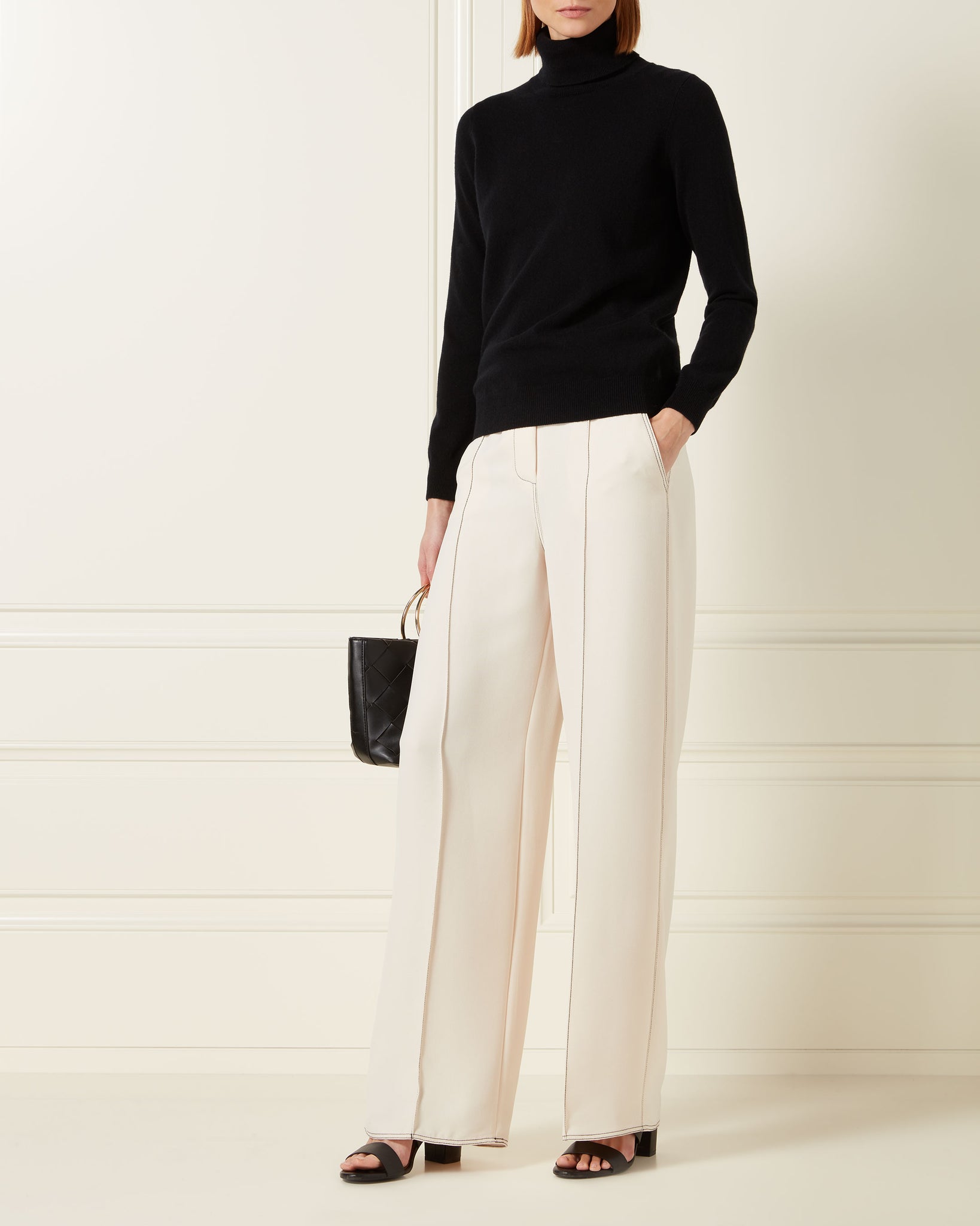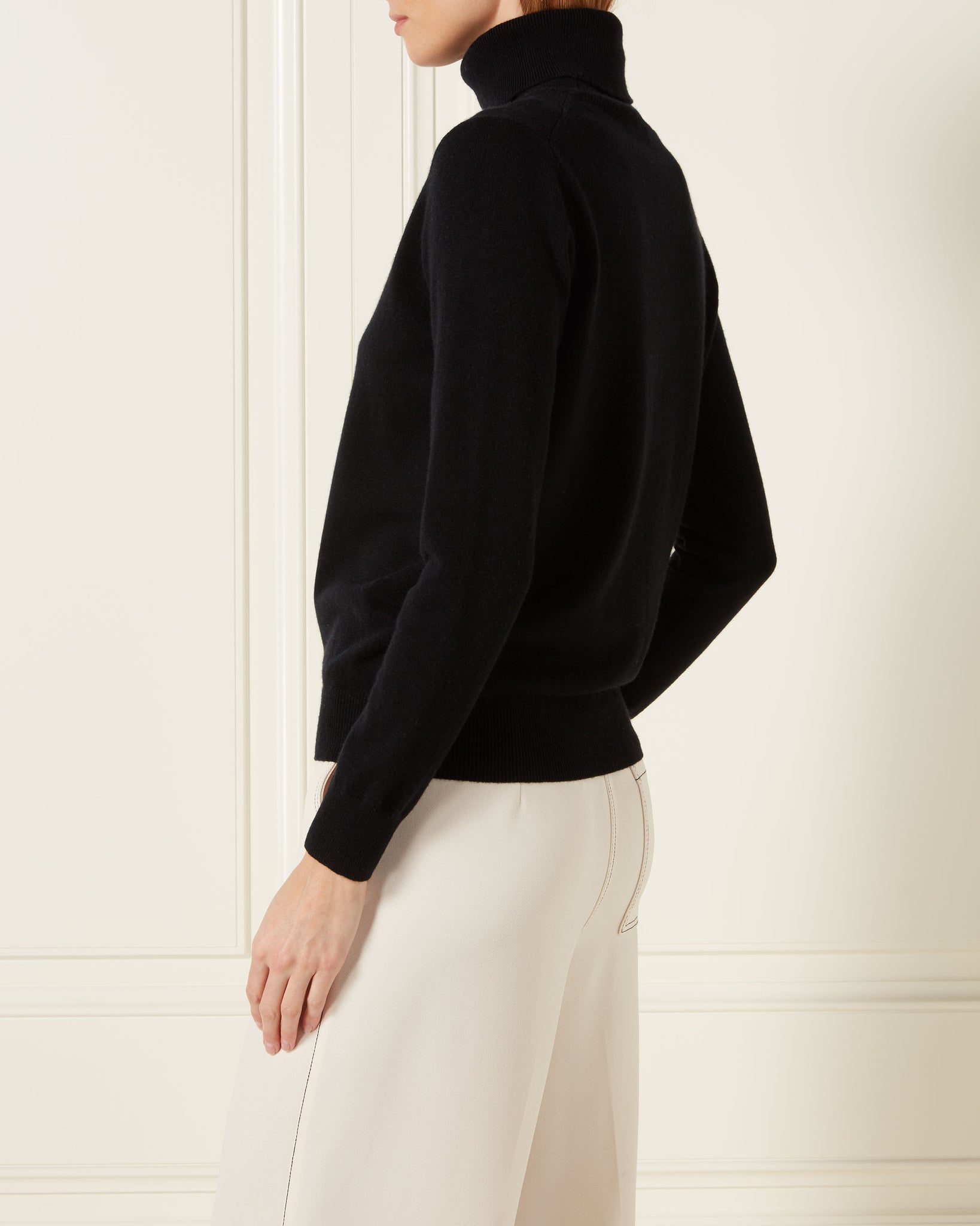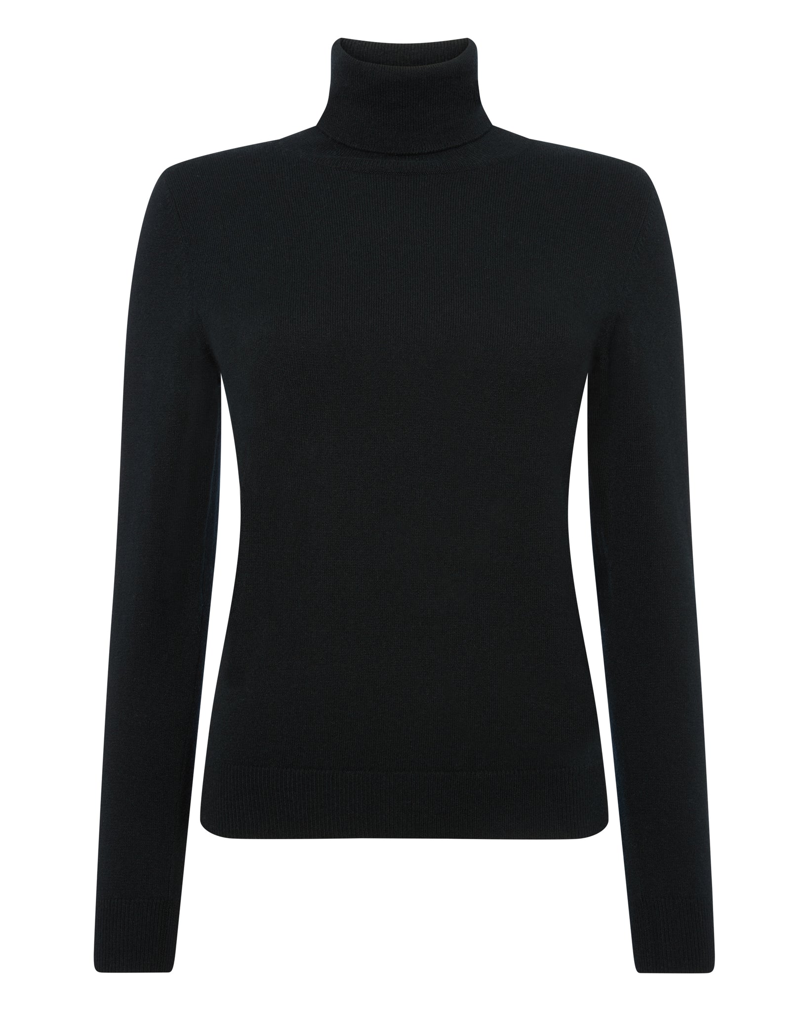 Our cashmere in this polo neck cashmere sweater in black.