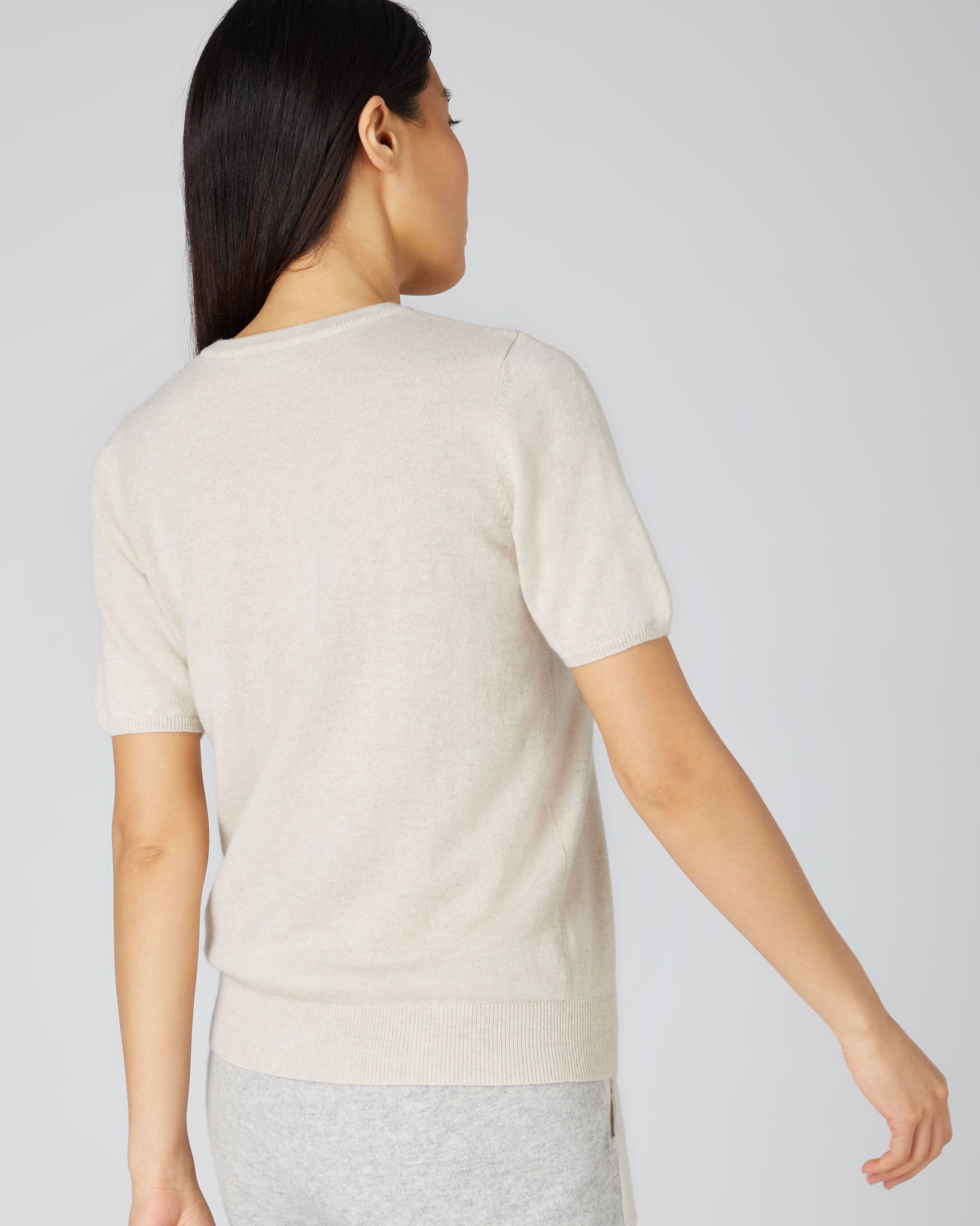 - 100% Mongolian Organic Cashmere - Flattering round neck style - Short sleeves - Perfect layering piece - Neat matching trim finish