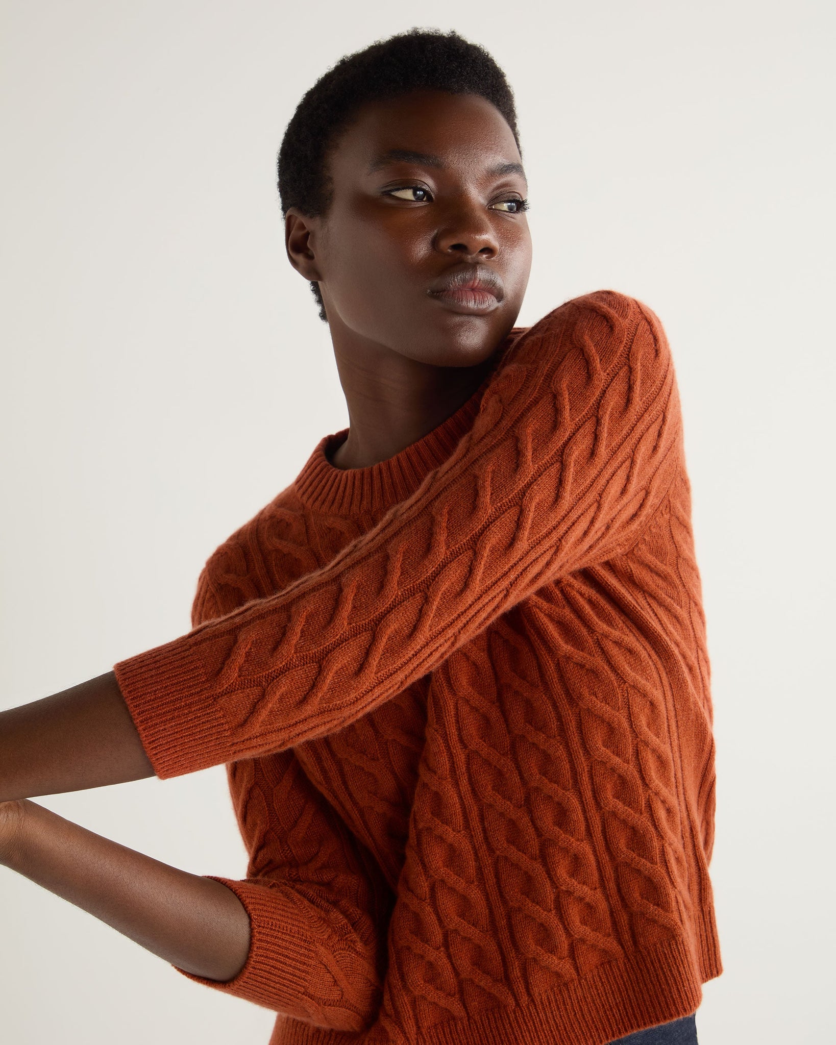 Women's Emilia Cable Round Neck Cashmere Jumper Rust Orange