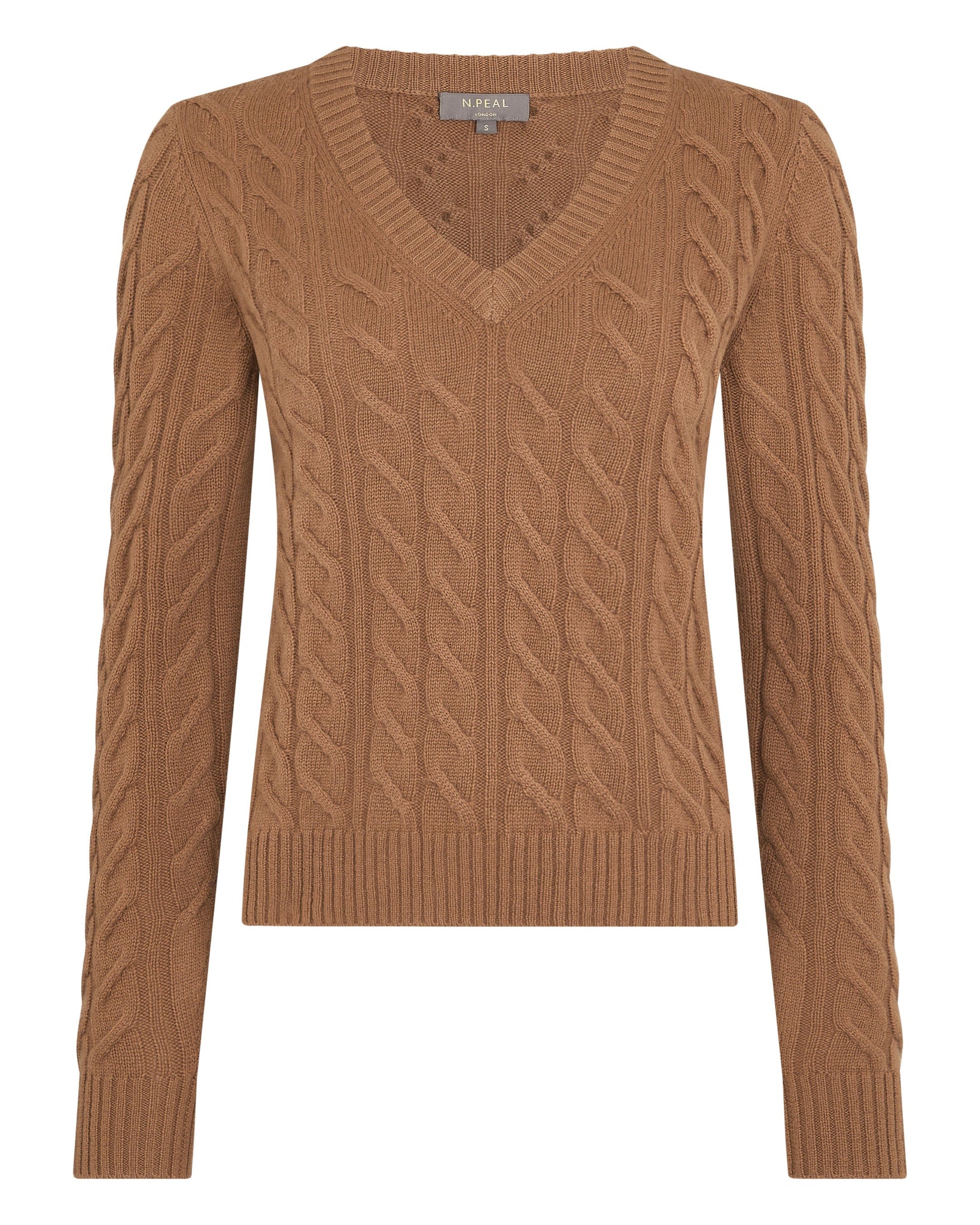 Women's Frankie Cable V Neck Cashmere Jumper Dark Camel Brown