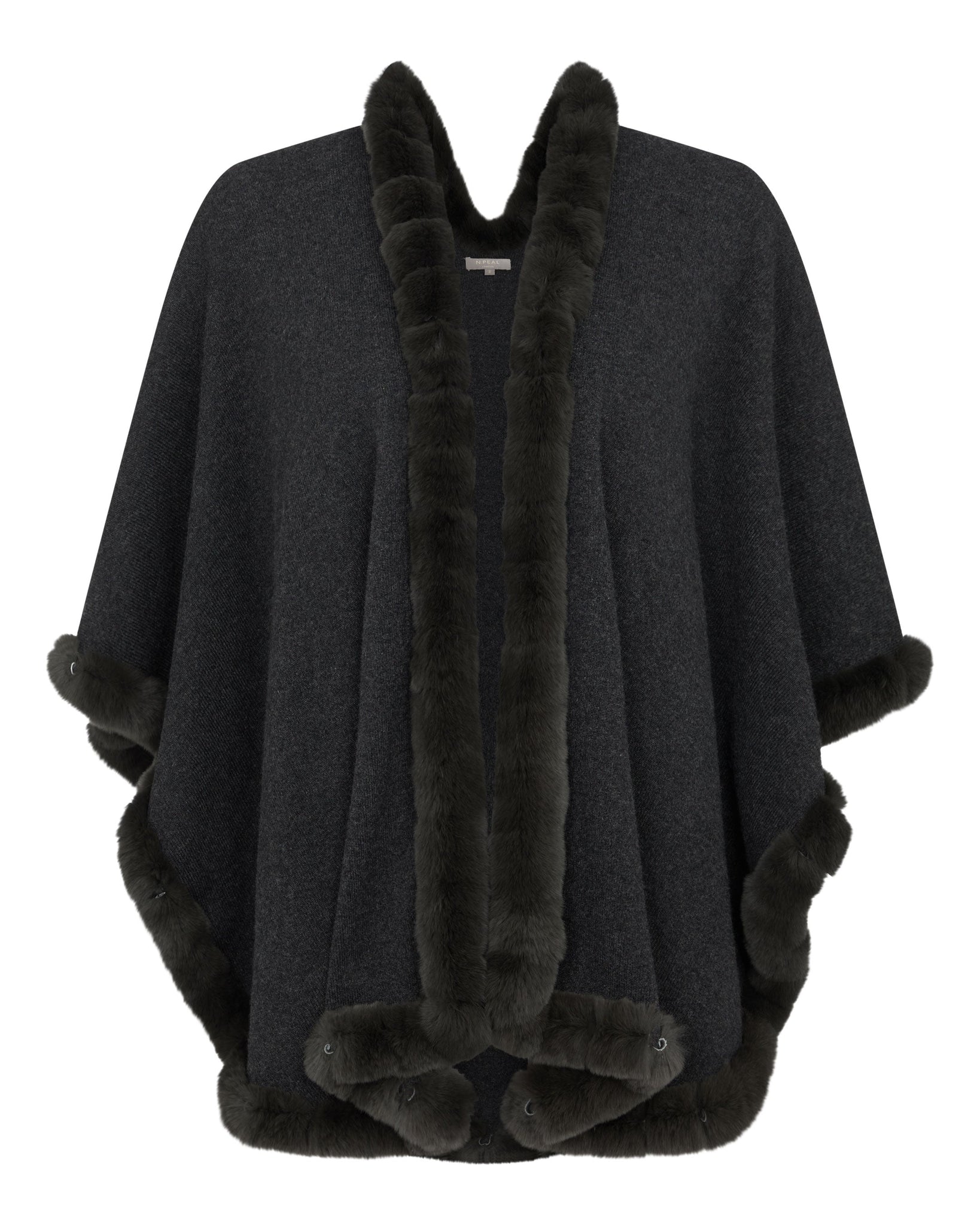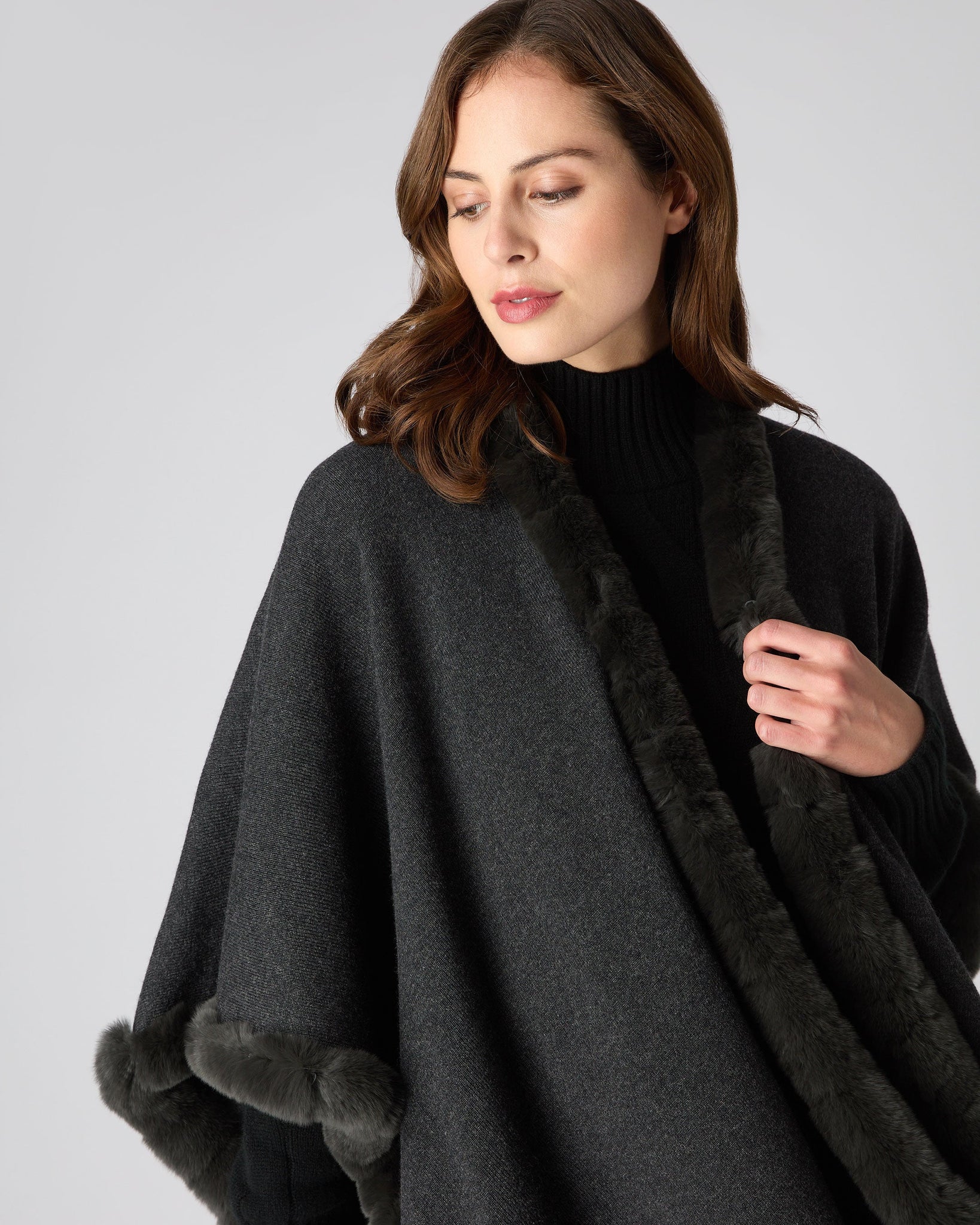 Women's Ayla Fur Trim Cashmere Cape Dark Charcoal Grey
