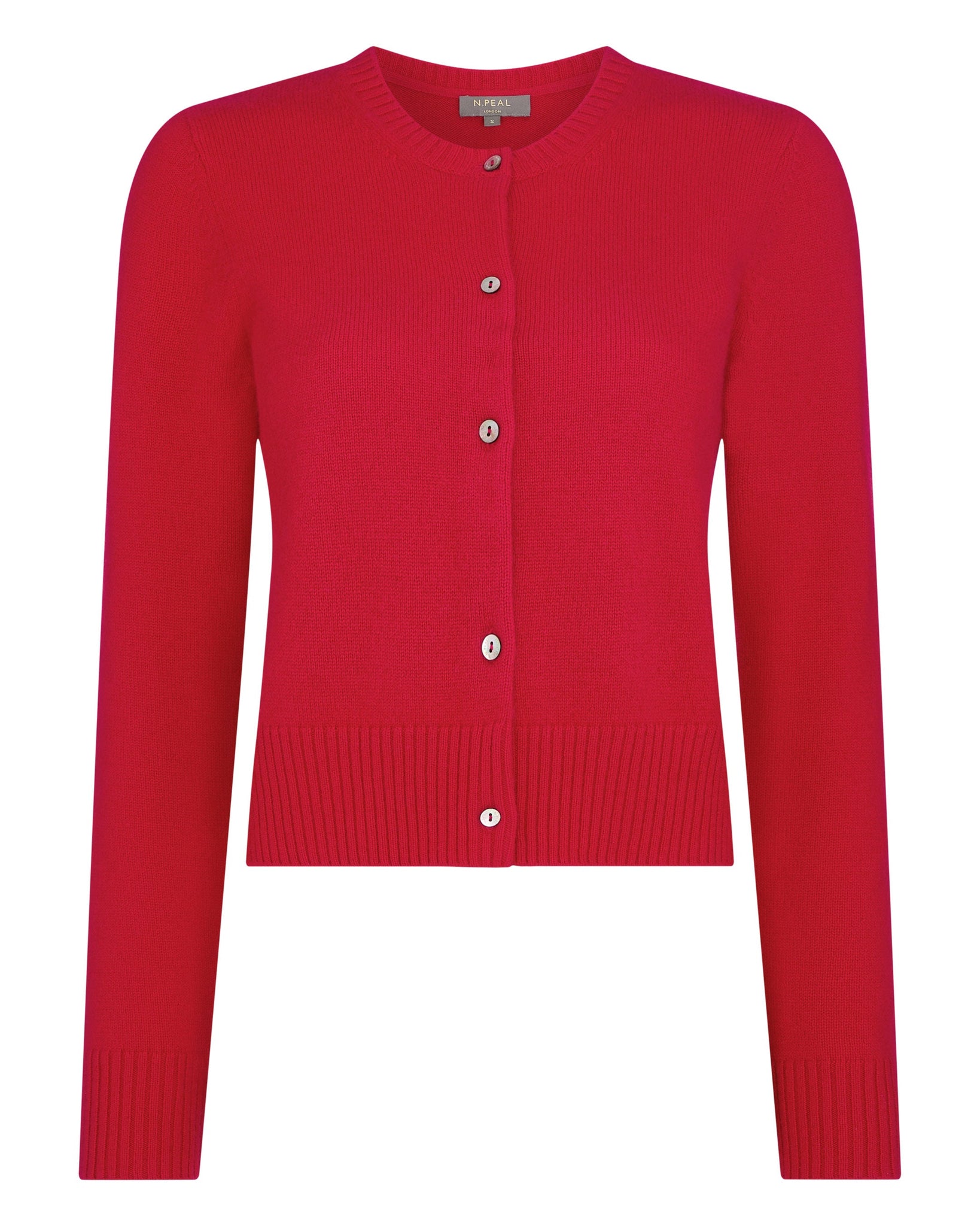 N.Peal Women's Chunky Crop Cashmere Cardigan Riding Red