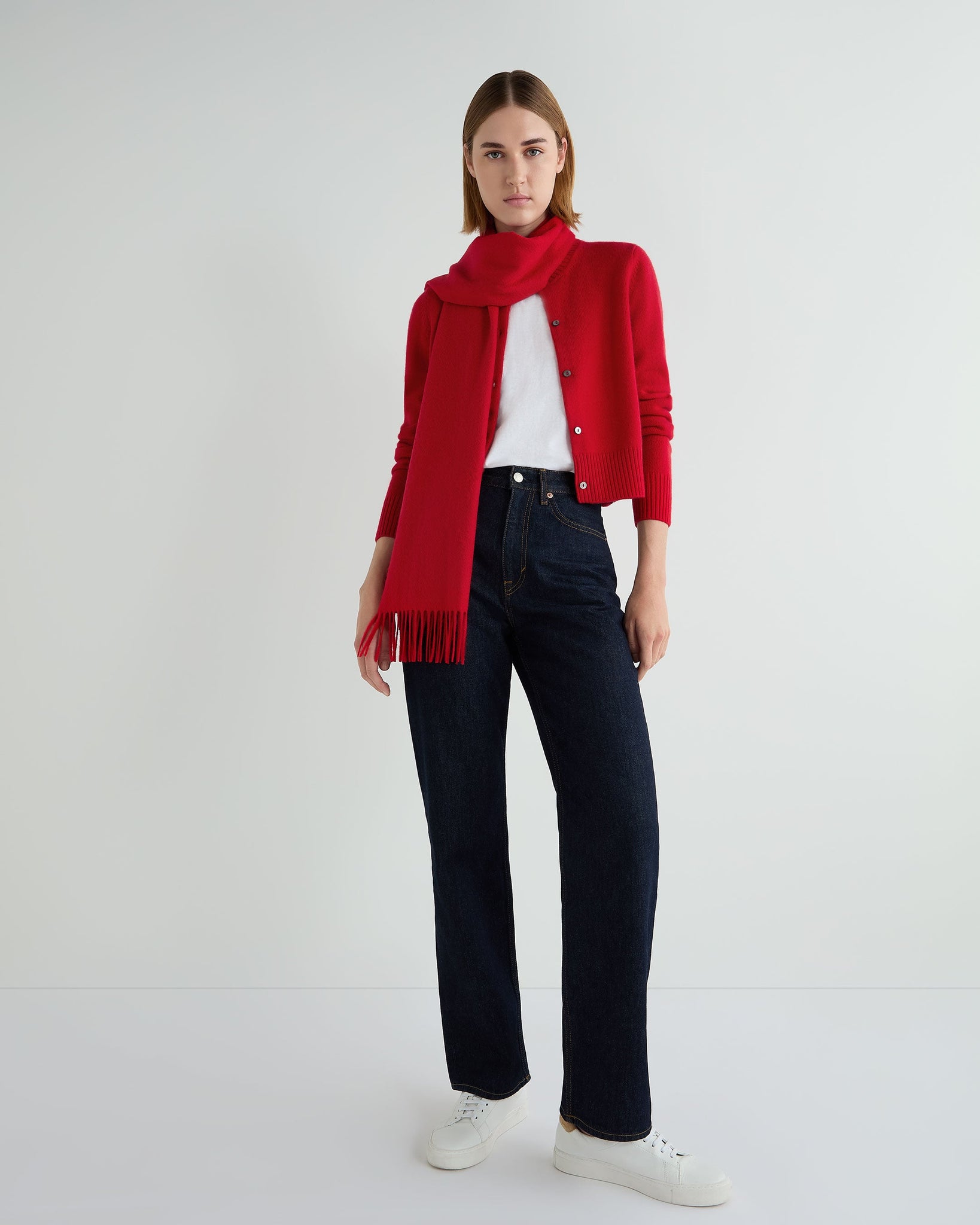 Women's Chunky Crop Cashmere Cardigan Riding Red