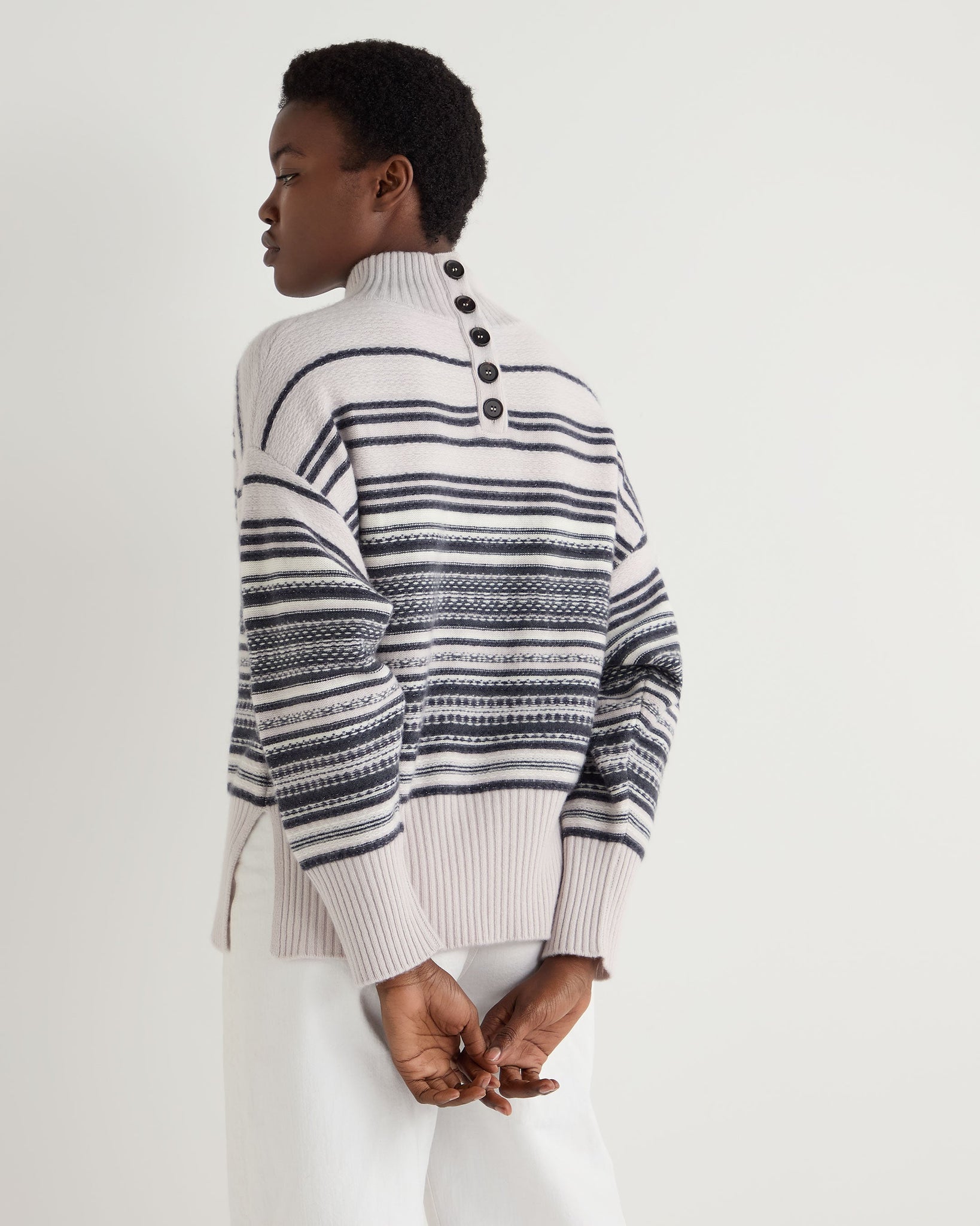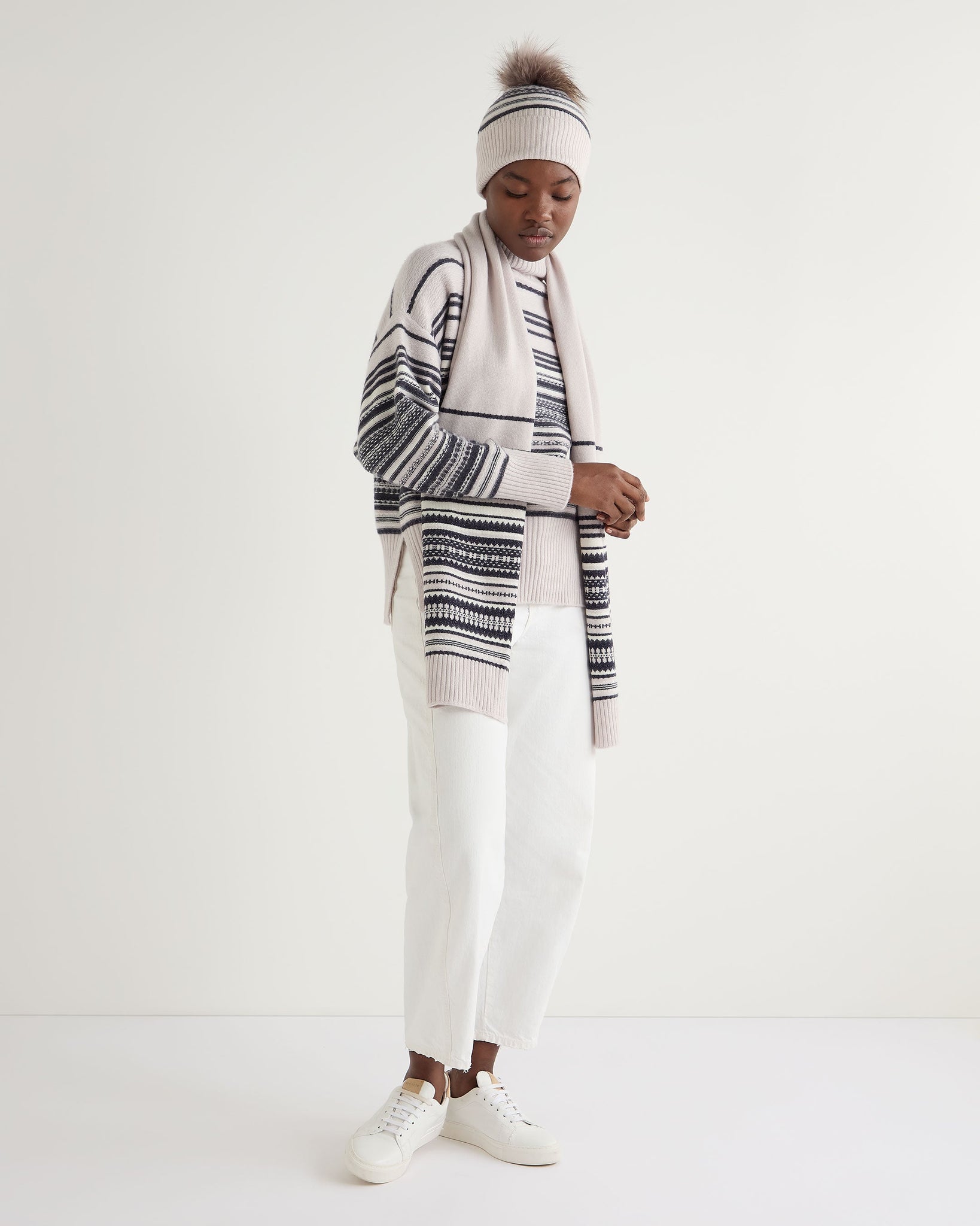 Women's Fairisle Mock Neck Cashmere Jumper With Lurex Snow Grey