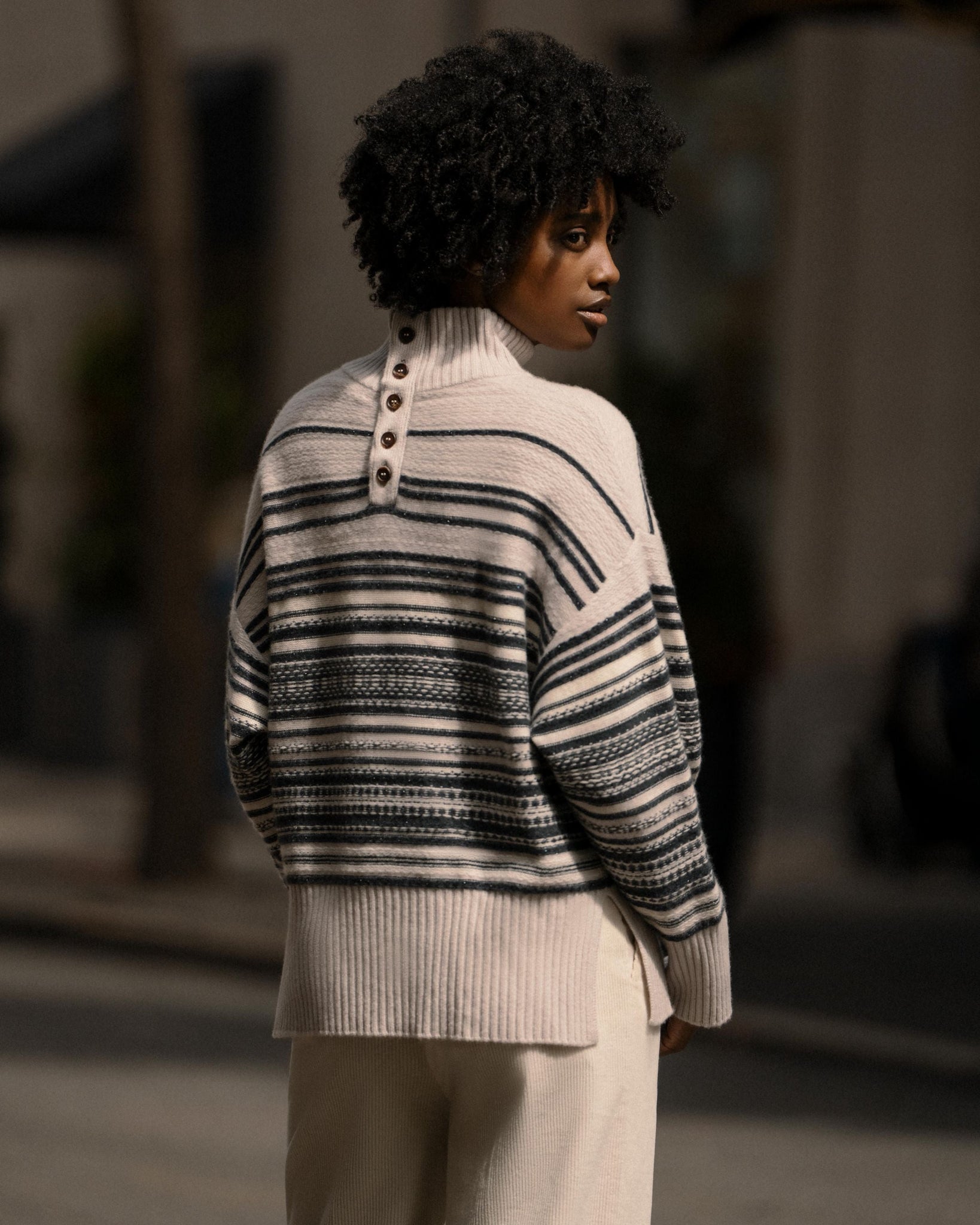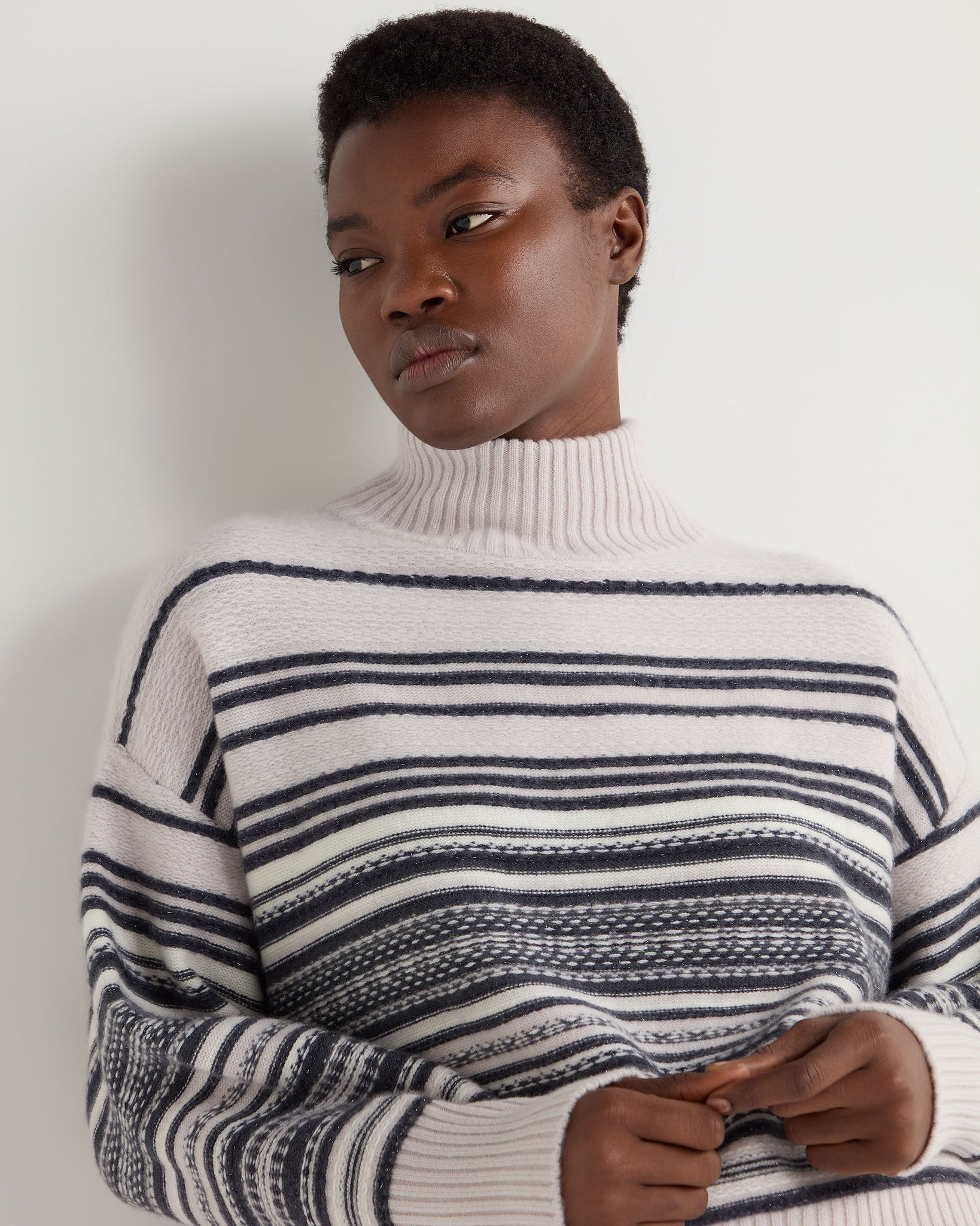 Embrace timeless charm with our new fairisle mock neck sweater.