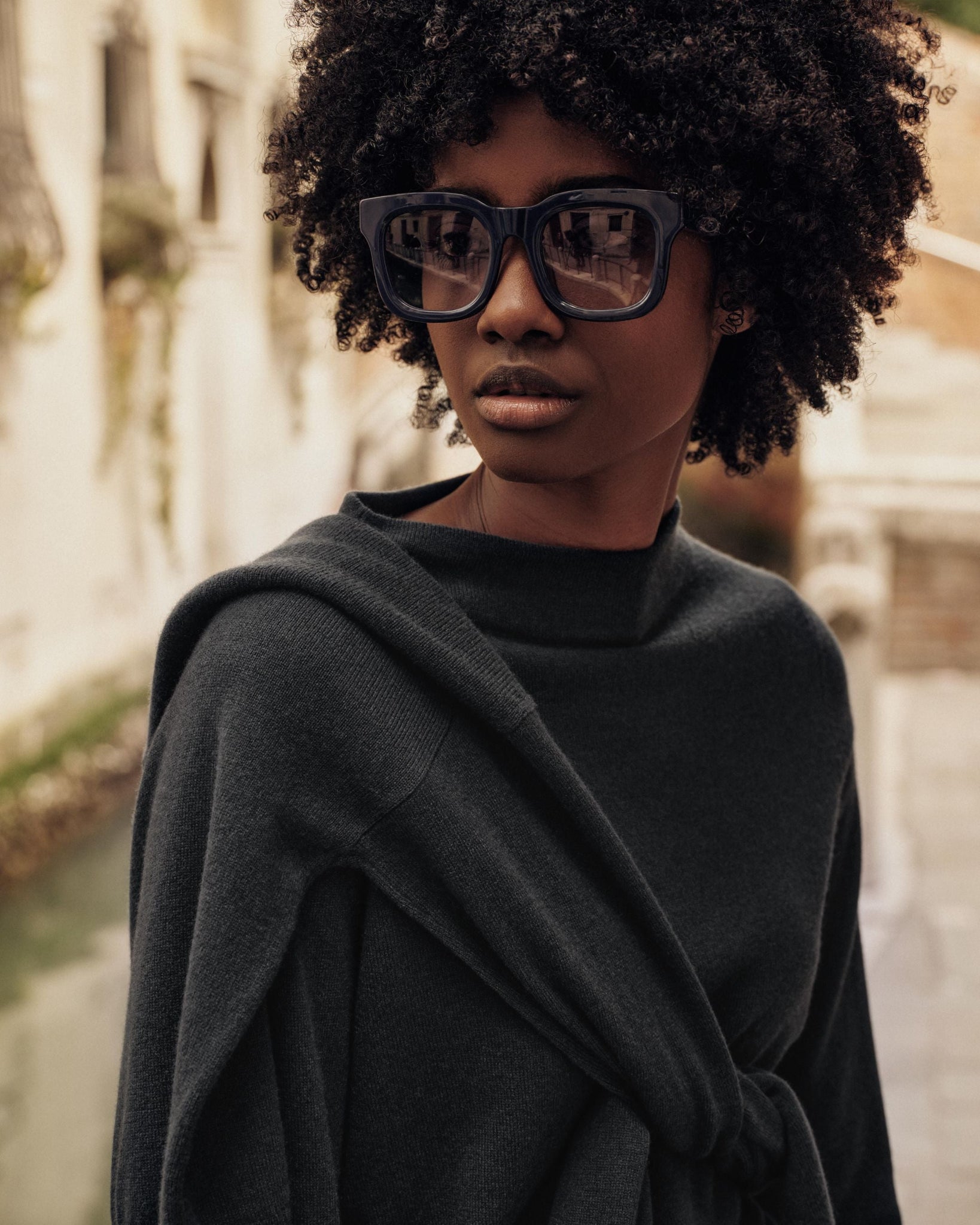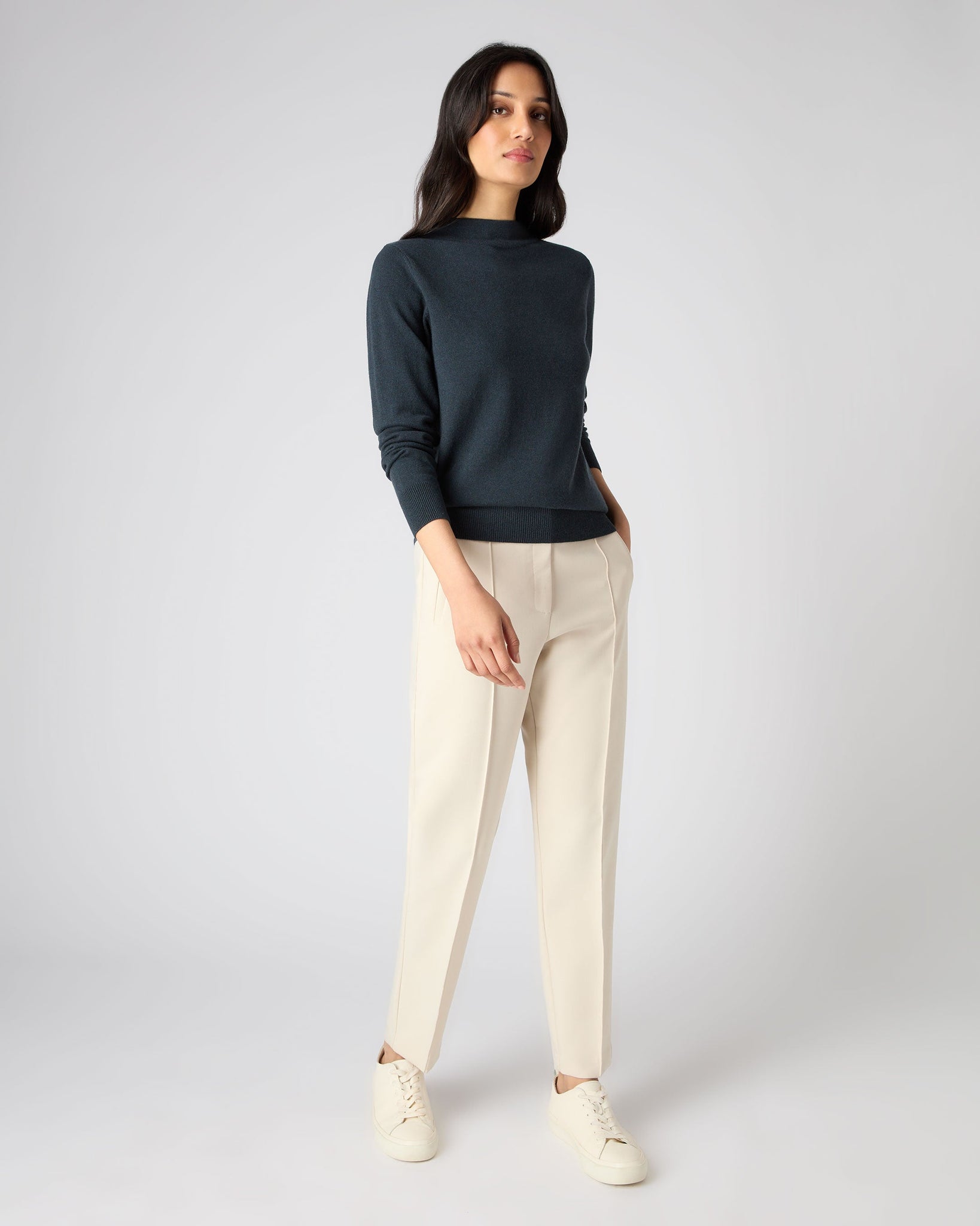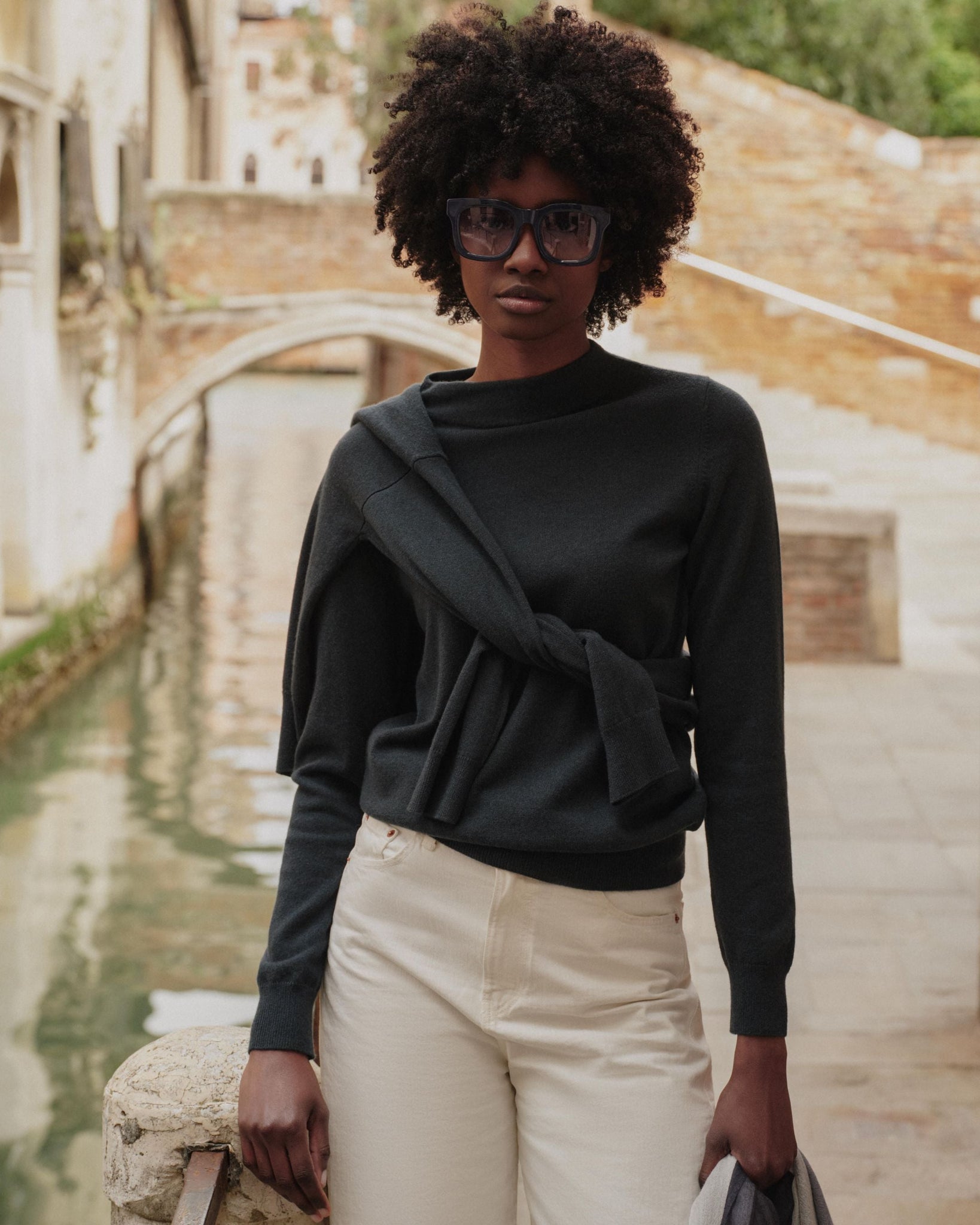 - Made from 100% organic Mongolian cashmere - Comfortable and elegant funnel neck design - Matching ribbed cuffs and hem - Comfortable new classic style with a flattering neckline - Model is wearing size Small - Care: Hand Wash