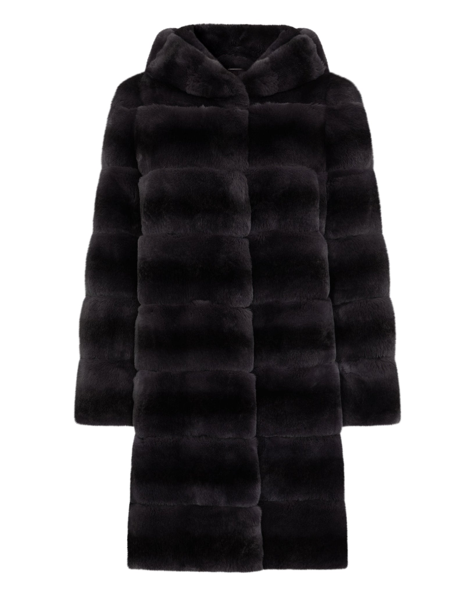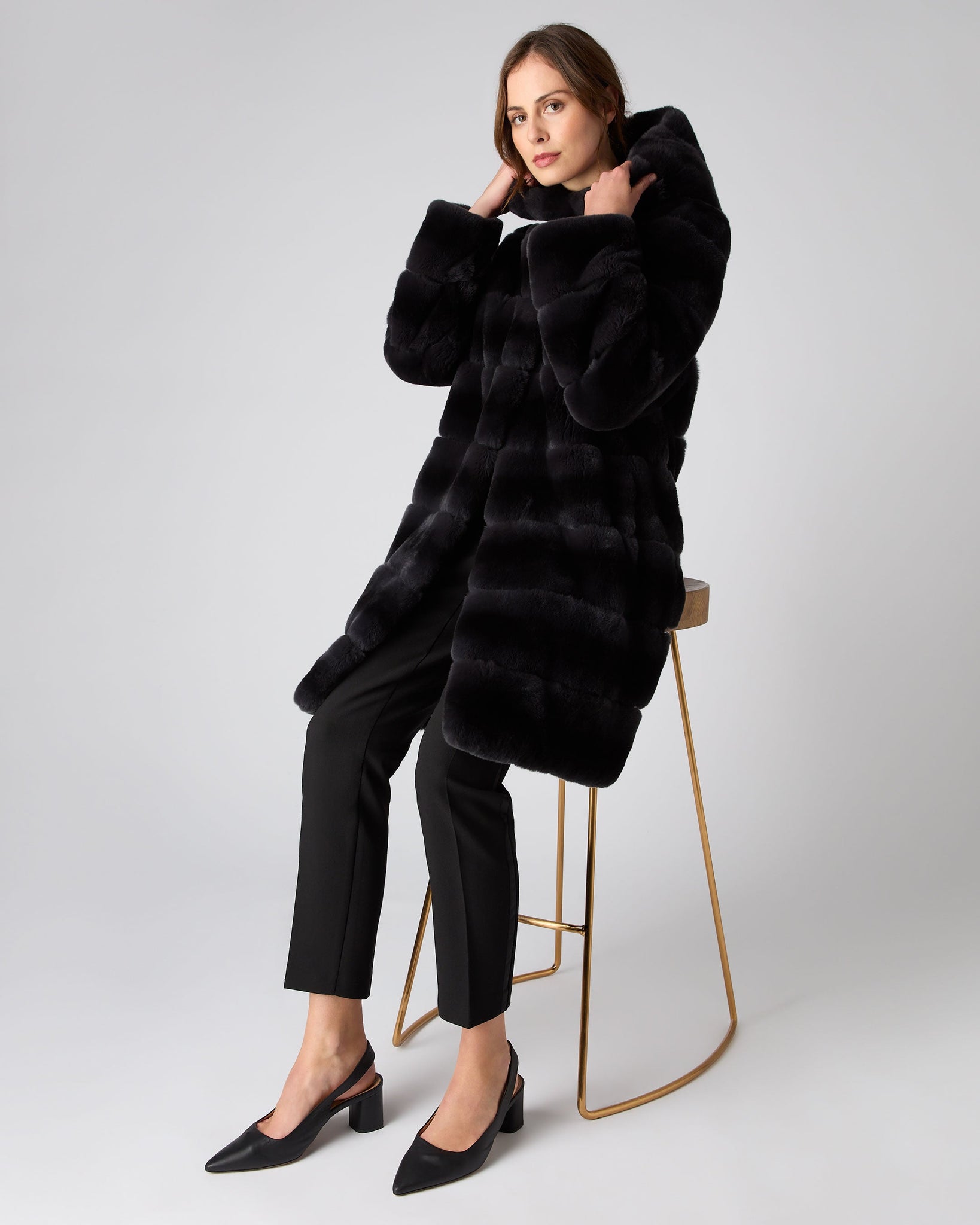 N.Peal Women's Long Rex Hooded Coat Dark Grey