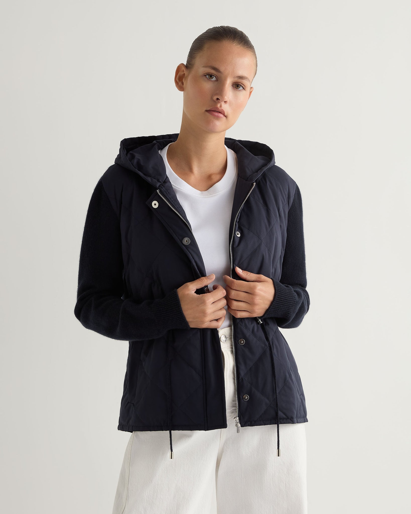 Women's Quilted Woven Mix Cashmere Jacket Navy Blue