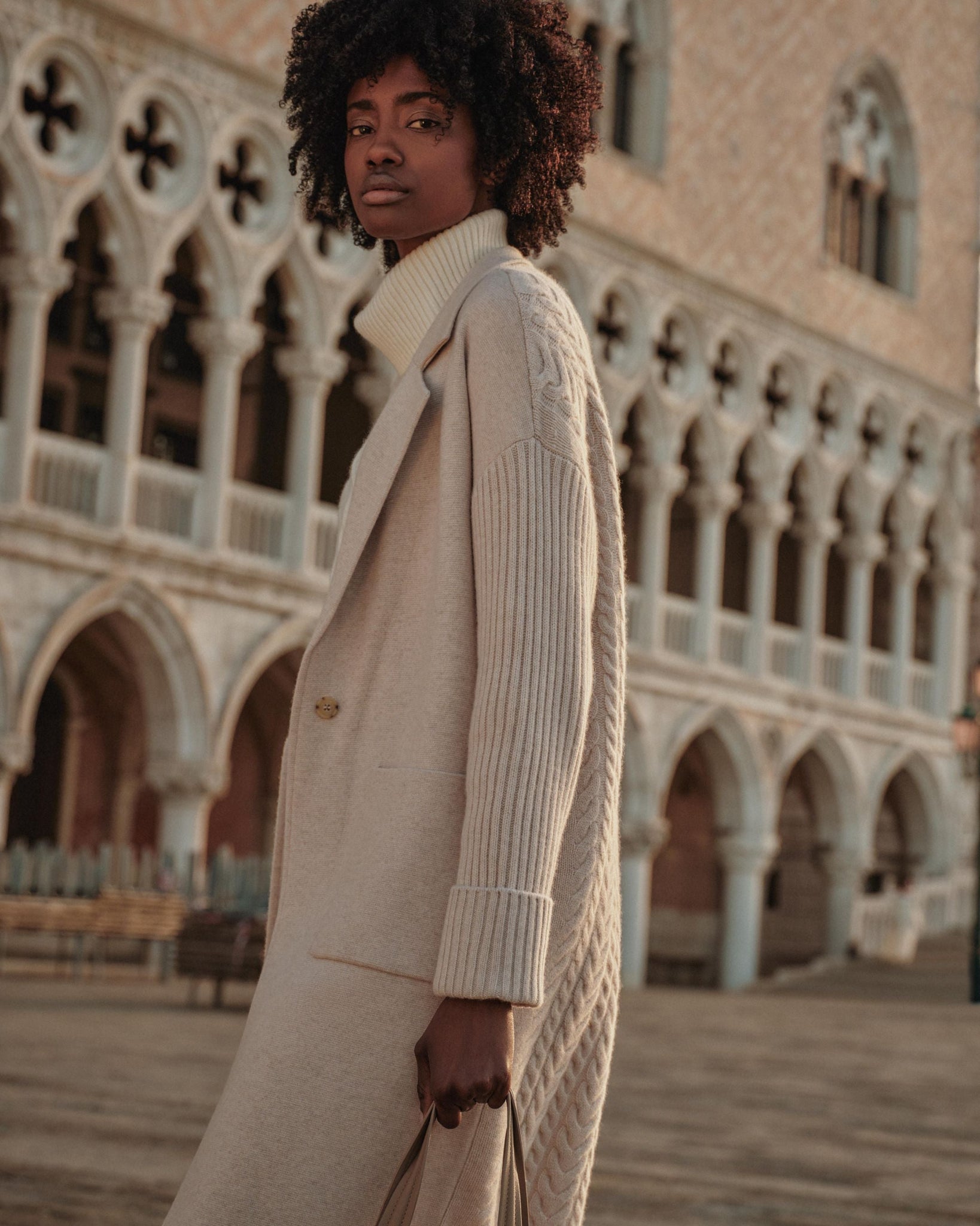 - Made from 100% organic Mongolian cashmere - Dropped shoulder style oozing luxury - Beautiful soft cable pattern - Matching deep cuffs, collar and hem - Generous roll neck style, warm and soft against the skin - Model is wearing size Small - Care: Hand Wash