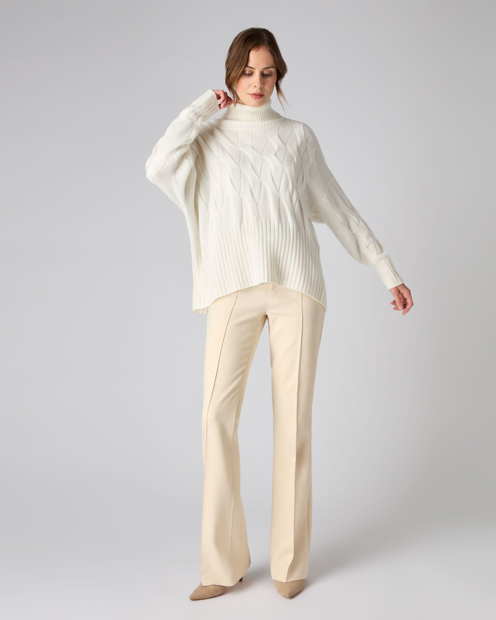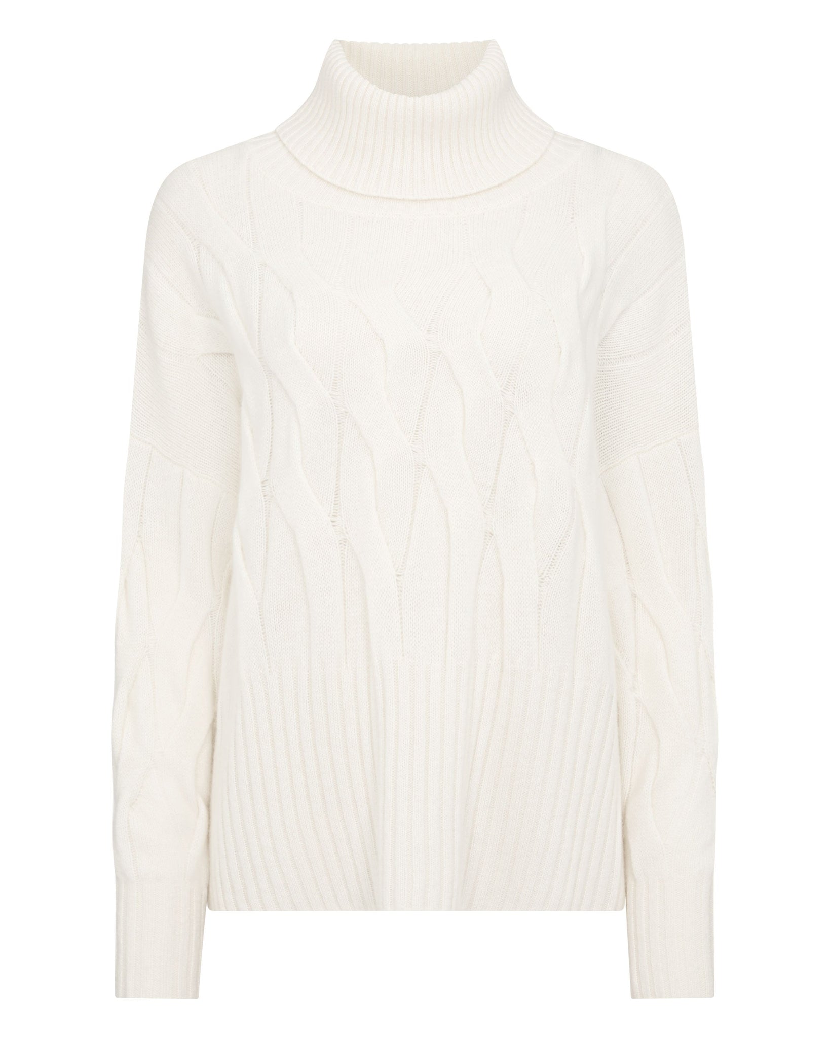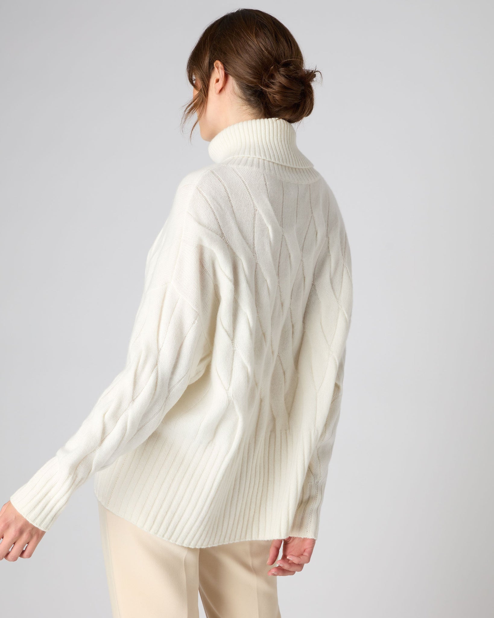 Women's Relaxed Cable Roll Neck Cashmere Jumper New Ivory White