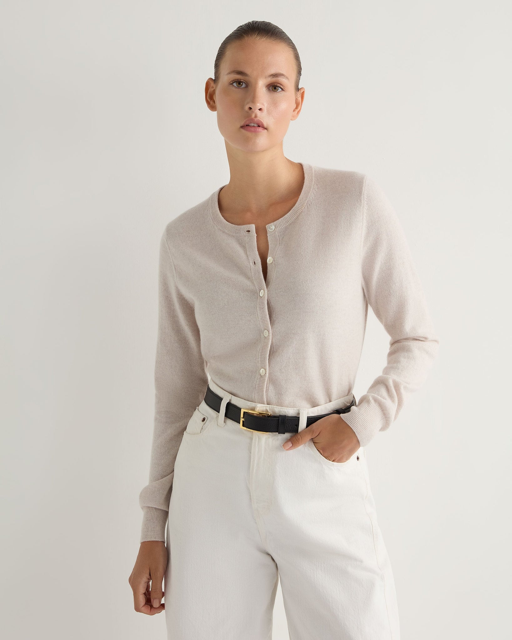 Women's Olivia Round Neck Cashmere Cardigan Frost White