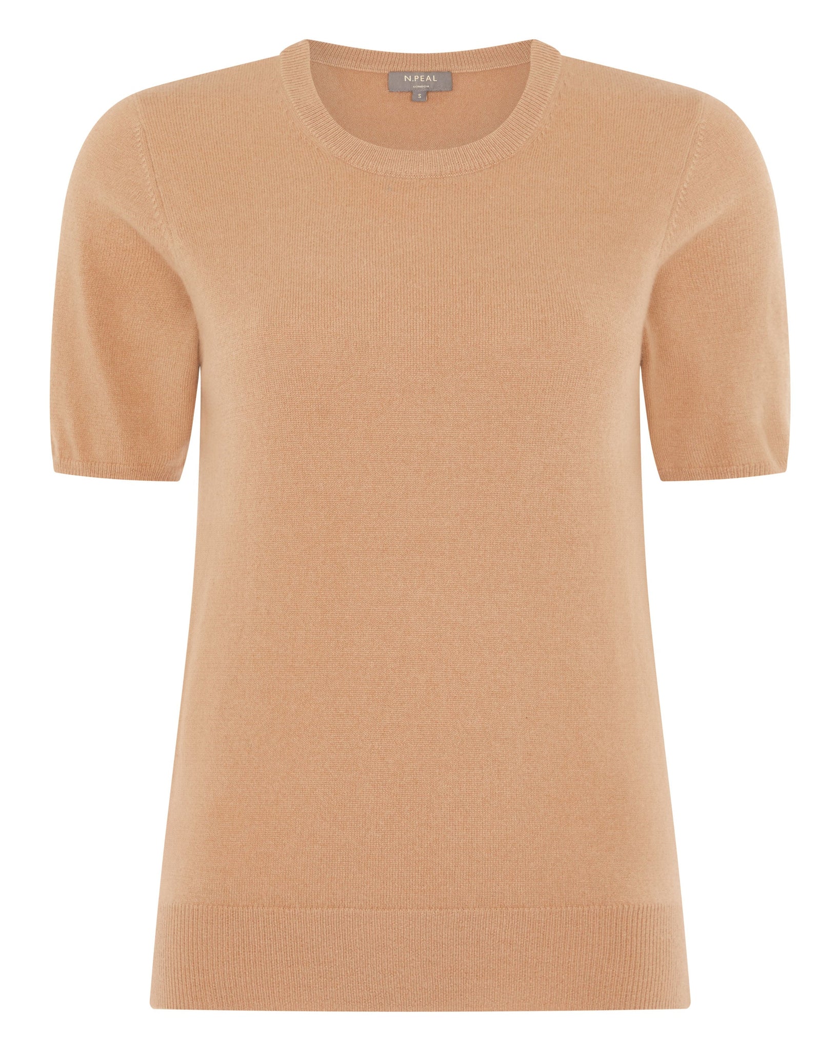 N.Peal Women's Round Neck Cashmere T Shirt Sahara Brown